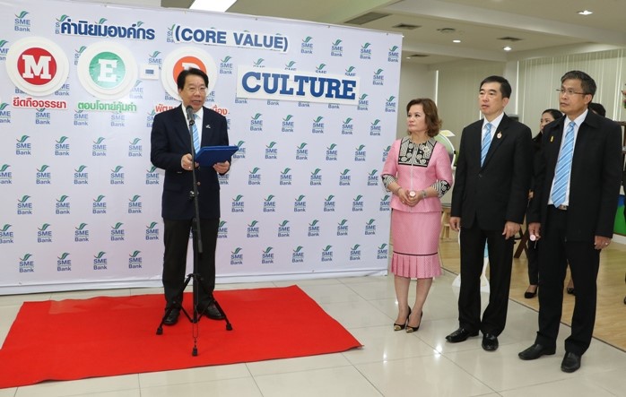 กรรมการผู้จัดการ ธพว. กล่าวอีกว่า “การสร้างค่านิยมใหม่ขององค์กร SME-D เอสเอ็มอี ดีมากมาก Culture ดังกล่าว เพื่อเป็นแนวทางปลูกฝังให้พนักงานของธนาคารยึดถือปฏิบัติสร้างวัฒนธรรมองค์กร สะท้อนการทำงานที่มีประสิทธิภาพ โปร่งใส ยึดถือธรรมาภิบาล สร้างแนวทางในการปฏิบัติงานของพนักงานไปในทิศทางเดียวกัน เพื่อสร้างความเชื่อมั่นลูกค้า ผู้มีส่วนได้ส่วนเสีย และบรรลุเป้าหมายก้าวสู่การเป็น SME Development Bank ธนาคารเพื่อการพัฒนาอย่างแท้จริง โดยให้บริการผู้ประกอบการรายย่อยอย่างมีประสิทธิภาพ ทั้งการให้สินเชื่อ ร่วมลงทุน และการพัฒนาผู้ประกอบการตามบทบาทภารกิจของธนาคารและสอดรับนโยบายรัฐบาล มู่งสู่ SME 4.0 สนับสนุนผู้ประกอบการ SMEs รอบด้านทุกมิติ เพื่อพัฒนาเติบโตต่อเนื่องอย่างมีประสิทธิภาพ รวมถึงใช้เทคโนโลยีนวัตกรรมมาช่วยในการดำเนินงานให้บรรลุเป้าหมายต่อไป