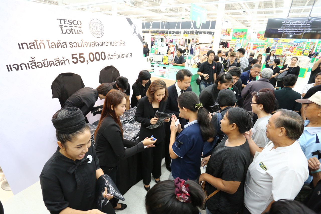 หลังจากประกาศความมุ่งมั่นแจกเสื้อยืดสีดำ ร่วมกับ กรมการค้าภายใน กระทรวงพาณิชย์ จำนวน 55,000 ตัว เทสโก้ โลตัส ยกทัพเสื้อดำล็อตสุดท้าย 30,000 ตัว ปูพรมแจกผ่านเทสโก้ โลตัส 60 สาขาทั่วประเทศ ให้ประชาชน เพื่อสวมใส่แสดงความไว้อาลัย พระบาทสมเด็จพระปรมินทรมหาภูมิพลอดุลยเดช โดยเบื้องต้น 5,000 ตัวแรก แจกผ่านเทสโก้ โลตัส 9 สาขาในเขตกรุงเทพมหานคร เมื่อวันที่ 24 ตุลาคม ขณะที่อีก 20,000 ตัว แจกผ่านเทสโก้ โลตัสอีก 40 สาขา สาขาละ 500 ตัว ทั้งในกรุงเทพและต่างจังหวัด เมื่อวันที่ 4 พฤศจิกายนที่ผ่านมา