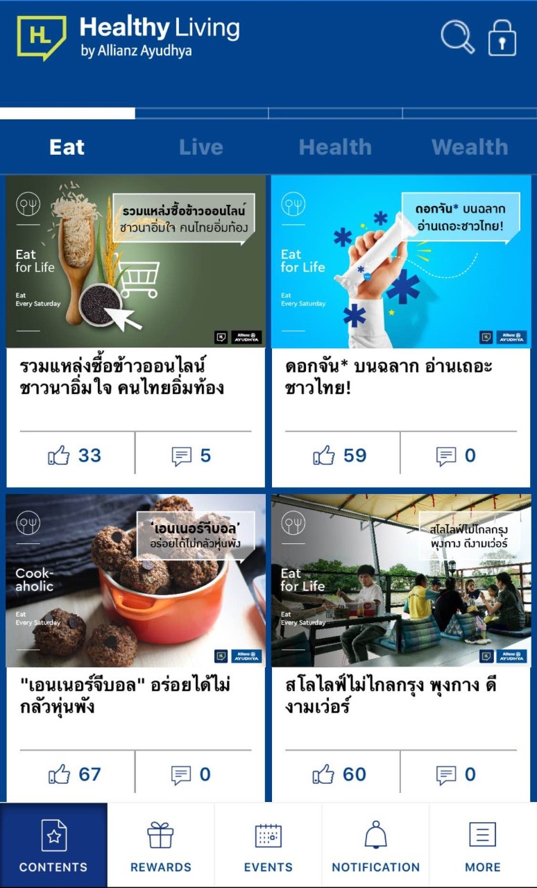 อลิอันซ์ อยุธยา ประกันชีวิต ตอกย้ำตำแหน่งผู้นำตลาดดิจิทัล เดินหน้าสร้างปรากฏการณ์ใหม่ เปิดตัว Healthy Living ดิจิทัลแพลตฟอร์มใหม่ล่าสุด ชูกลยุทธ์ content marketing มุ่งนำเสนอเนื้อหาที่มีประโยชน์ เข้าใจง่าย เหมาะกับไลฟ์สไตล์ชีวิตประจำวันของคนยุคใหม่ ครอบคลุมทุกด้าน ทั้งเรื่องอาหารการกิน สุขภาพ กาย ใจ และการวางแผนการเงินเพื่อคุณภาพชีวิตที่ดีขึ้น ภายใต้แนวคิด “กินดี ชีวิตดี สุขภาพดี มีใช้จ่าย” หวังเป็นแหล่งข้อมูลความรู้ พร้อมสร้างปฏิสัมพันธ์ที่ดีกับลูกค้าและผู้ใช้งานยุคดิจิทัล