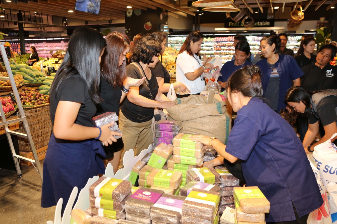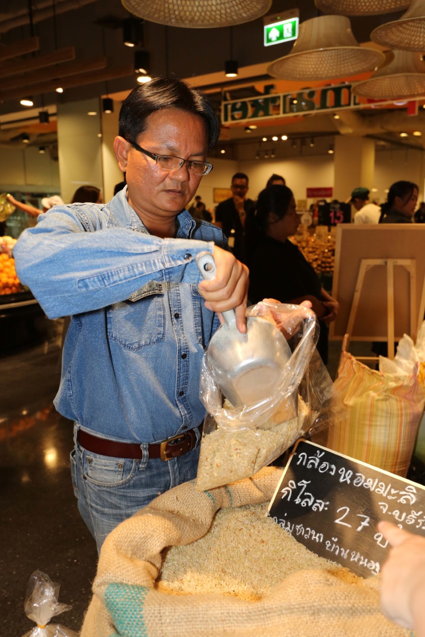 ส่วน ชบา ศรีสุโน ตัวแทนจากกลุ่มวิสาหกิจชุมชนผู้ผลิตข้าวกล้องงอกฝั่งแดง จังหวัดนครพนม กล่าวว่า “เราเป็นกลุ่มชาวนารายย่อยและชาวบ้านในชนบทที่ผลิตข้าวอินทรีย์ เริ่มต้นมาจาก เมื่อนานมาแล้ว ในหลวงท่านได้ส่งทหารเข้ามาเพื่ออบรมให้ความรู้ชาวบ้านในเรื่องการทำปุ๋ยชีวภาพ เราก็ศึกษาและนำมาแปรรูป โดยปัจจุบันกลุ่มของเราปลูกข้าวหลายสายพันธุ์ อาทิ ข้าวหอมมะลิ 105 ซึ่งเป็นสายพันธุ์พระราชทาน, ข้าวไรซ์เบอร์รี่ ที่มีสารต้านอนุมูลอิสระสูง เรายังได้จำหน่ายข้าวไรซ์เบอร์รี่ร่วมกับองค์กรที่ปลูกข้าวไรซ์เบอร์รี่ ที่พระเจ้าวรวงศ์เธอ พระองค์เจ้าโสมสวลี พระวรราชาทินัดดามาตุ สนับสนุนมาตลอด นอกจากนี้เรายังมีข้าวกล้องงอก ซึ่งมีสารกาบ้า ช่วยบำรุงสมองส่วนกลาง และยังมีคุณประโยชน์สูงกว่าข้าวขาวและข้าวกล้อง 15 – 30 เท่า, ข้าวหอมมะลิแดง ที่เหมาะสำหรับผู้ที่เป็นโรคเบาหวาน เพราะเป็นข้าวที่มีดัชนีมวลน้ำตาลต่ำ ส่วนข้าวหอมมะลิ เป็นข้าวที่คนในชุมชนนิยมปลูกมากที่สุด ส่งผลให้ข้าวล้นตลาด ราคาตกต่ำ รวมถึงไม่มีตลาดที่จะส่งข้าวออก เพราะในปัจจุบัน เราส่งข้าวขายแค่ในชุมชน ตามร้านค้าในตลาด พอ ท็อปส์ ติดต่อมาให้เรานำข้าวมาขายใน ท็อปส์ เราเลยไปเล่าให้คนในกลุ่มฟัง ทุกคนแทบจะกลั้นน้ำตาไว้ไม่ไหว ดีใจที่จะมีสถานที่ขายข้าวแล้ว ประกอบกับลูกค้าของ ท็อปส์ เป็นกลุ่มคนรักสุขภาพ เลยคิดว่าเราน่าจะขายข้าวได้ เพราะในชุมชนนิยมบริโภคข้าวขาวเป็นส่วนใหญ่ ข้าวของเราจึงขายได้ไม่กี่บาท เราขอเป็นตัวแทนกลุ่มขอบคุณ ท็อปส์ อีกครั้งที่เข้าใจถึงหัวอกเกษตรกร เข้าใจถึงความทุกข์ความเครียดที่ชาวนาไม่สามารถระบายข้าวออกได้ ขอบคุณมากค่ะ”
