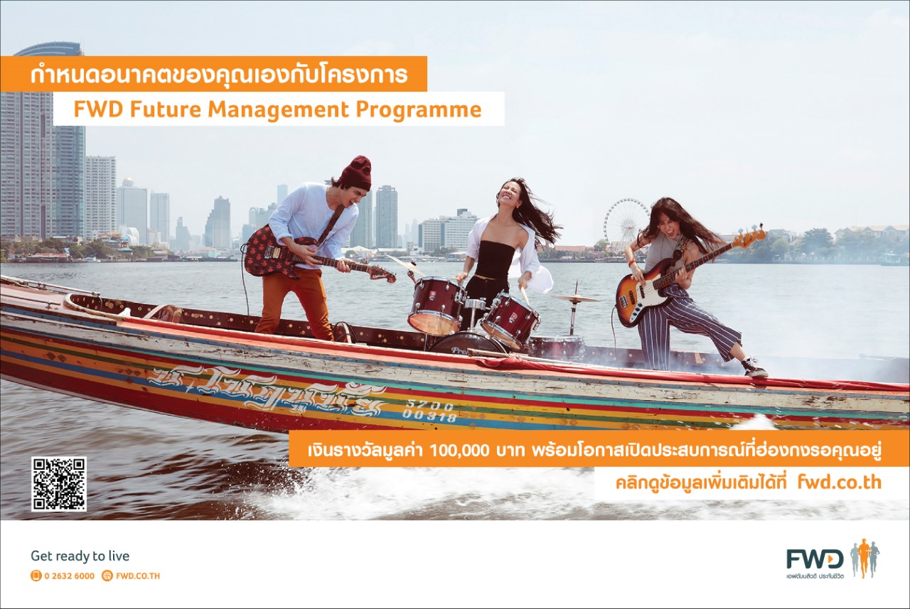เอฟดับบลิวดี ประกันชีวิต ขอเชิญน้องๆ นักศึกษาที่กำลังจะสำเร็จการศึกษาในระดับปริญญาตรี เข้าร่วมโครงการ FWD Future Management Program กติกาง่ายๆ เพียงจับกลุ่มกับเพื่อนให้ได้ 4 คน ต่อทีม นำเสนอ Business Initiative ตามหัวข้อที่กำหนดโดยไม่จำกัดรูปแบบการนำเสนอทั้งภาษาไทยหรือภาษาอังกฤษ สนใจเข้าไปดูรายละเอียดได้ที่ : www.fwd.co.th/th/press/2016/FWD-Future-management-program 4 ทีมที่ผ่านเข้ารอบการพิจารณาจะได้เข้า ร่วมโครงการ กับเอฟดับบลิวดีประกันชีวิต เป็นเวลา 2 เดือน พร้อมรับค่าตอบแทนเดือนละ 15,000 บาท และทีมที่ชนะเลิศจะได้รับเงินรางวัล 100,000 บาท พร้อมเข้าร่วม Hong Kong Exclusive Trip กับผู้บริหารระดับสูง!! รีบหน่อยนะคะ ส่งก่อนมีสิทธิ์ก่อน หมดเขต 31 ธ.ค. นี้ สอบถามเพิ่มเติม โทร 02-632-6266 (คุณนวพล) และ 02-632-6262 (คุณสุพิณดา) หรือ FWDfuturemanagement@fwd.co.th