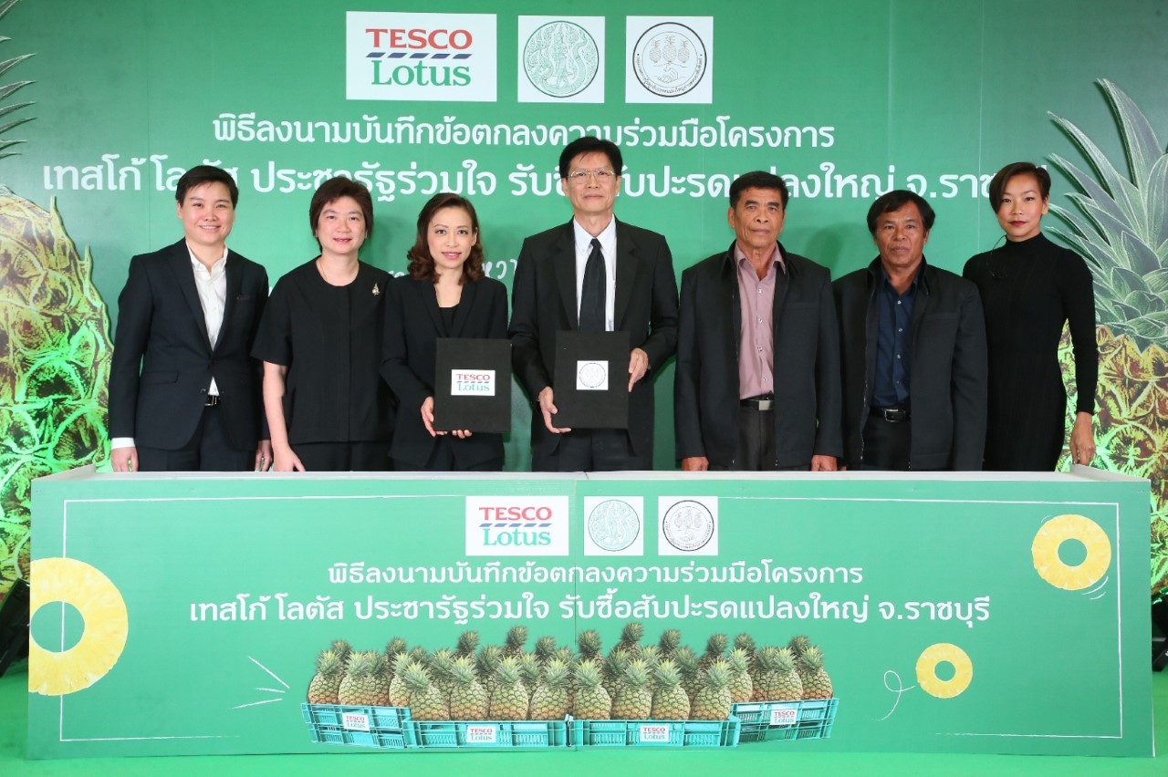 เทสโก้ โลตัส สานต่อโครงการประชารัฐ เซ็นสัญญากับกลุ่มเกษตรกรสับปะรดแปลงใหญ่ จังหวัดราชบุรี รับซื้อสับปะรดพันธุ์ปัตตาเวีย จำนวนทั้งหมดกว่า 110,000 กิโลกรัมเพื่อขายตลอดทั้งปี สนับสนุนกลุ่มเกษตรกรดำเนินงานตามแนวพระราชดำริในหลวงร.9 อย่างต่อเนื่อง