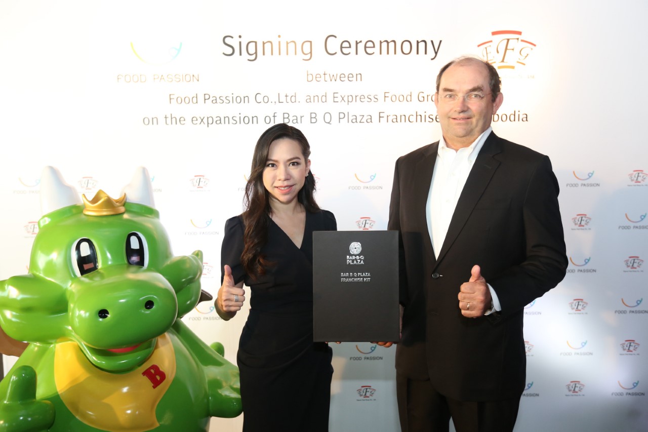 และเพื่อเดินหน้าโรดแมพนำแบรนด์บาร์บีคิวพลาซ่าสู่ภูมิภาคอาเซียน ล่าสุด บริษัท ฟู้ดแพชชั่น จำกัด ได้ประกาศเปิดตัวพันธมิตรยักษ์ใหญ่ บริษัท เอ็กเพรส ฟู้ด กรุ๊ป จำกัด (Express Food Group หรือ EFG) หนึ่งในผู้บริหารธุรกิจแฟรนไชส์ร้านอาหารชั้นแนวหน้าในภูมิภาคเอเชียอะวันออกเฉียงใต้และผู้ประกอบการร้านอาหารรายใหญ่ที่สุดของประเทศกัมพูชา โดยได้ลงนามสัญญาแต่งตั้งให้ EFG ได้รับสิทธิเป็น Master Franchise ในรูปแบบ Area Development Franchise ในประเทศกัมพูชาแต่เพียงผู้เดียว เพื่อให้การเจาะกลุ่มตลาดกัมพูชาทำโดยผู้ประกอบการที่มีความรู้ความชำนาญในประเทศ และเป็นไปอย่างมีประสิทธิภาพ โดยการร่วมมือในครั้งนี้ถือเป็นกลยุทธ์สำคัญในการรุกตลาดในภูมิภาคอาเซียน