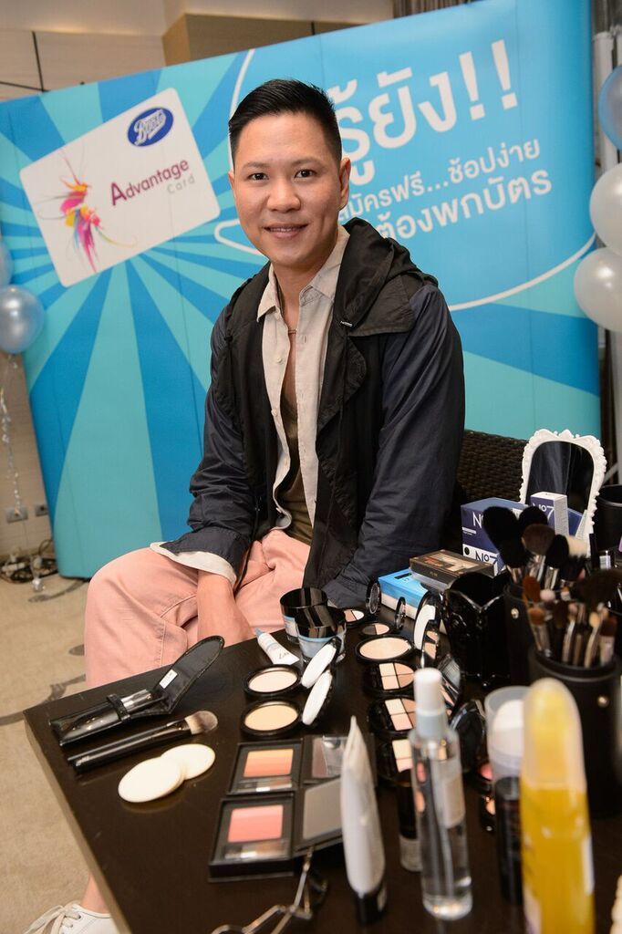 นอกจากนี้สมาชิกบู๊ทส์ แอดแวนเทจการ์ดยังได้เรียนรู้เทคนิคการแต่งหน้า จากเมคอัพอาร์ตทิสชื่อดัง มาร์ค-ณัฐวรรธน์ ธัญญะบุณย์ พร้อมกับเผยเทคนิคเตรียมเครื่องสำอางก่อนการเดินทางอีกด้วย โดยคุณมาร์คกล่าวว่า “เคล็ดลับการแต่งหน้าไปท่องเที่ยงช่วงซัมเมอร์นั้น ควรเลือกใช้แป้งผสมรองพื้น แทนการใช้รองพื้น หรือหากจำเป็นต้องใช้รองพื้น ควรใช้คู่กับแป้งฝุ่น ดยปัดทับเบาๆ เพื่อให้ดูเป็นธรรมชาติและลดความมันวาวของใบหน้า พร้อมเติมความชุ่มชื้นให้ผิวระหว่างวันด้วยสเปรย์น้ำแร่ขนาดพกพา สำหรับการใช้สีสันแต่งแต้มบนใบหน้า ควรเลือกพกพาเครื่องสำอางแบบอเนกประสงค์ที่มีหลายสีในตลับเดียว เลือกใช้สีแก้มที่สามารถลงสีที่ตาได้ด้วย หรือลิปสติกบางสี เช่น สีนู้ด ส้ม ชมพู ที่สามารถใช้แทนสีปัดแก้มได้ เพียงแตะบางๆ เหมือนครีมบลัช ส่วนอายครีม