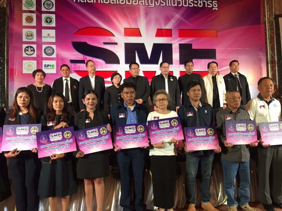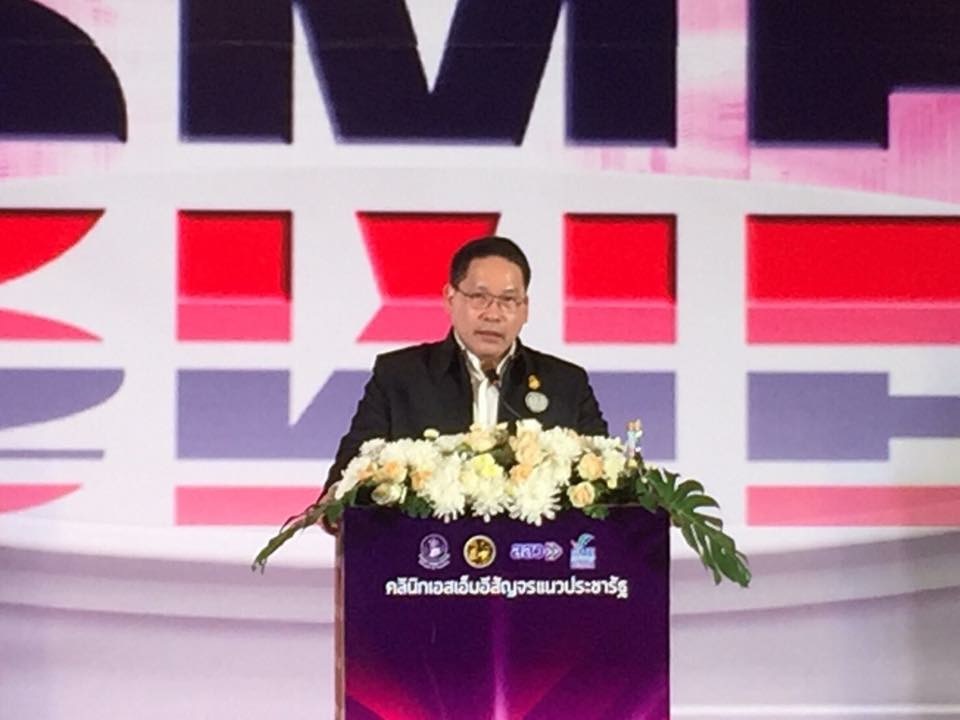ดร.สมชาย หาญหิรัญ ปลัดกระทรวงอุตสาหกรรม ในนามประธานกรรมการ ธนาคารพัฒนาวิสาหกิจขนาดกลางและขนาดย่อมแห่งประเทศไทย (SME Development Bank หรือ ธพว.) และ นายมงคล ลีลาธรรม กรรมการผู้จัดการ ร่วมพิธีเปิดงาน “คลินิกเอสเอ็มอีสัญจรแนวประชารัฐ” ครั้งที่ 5 จ.มุกดาหาร