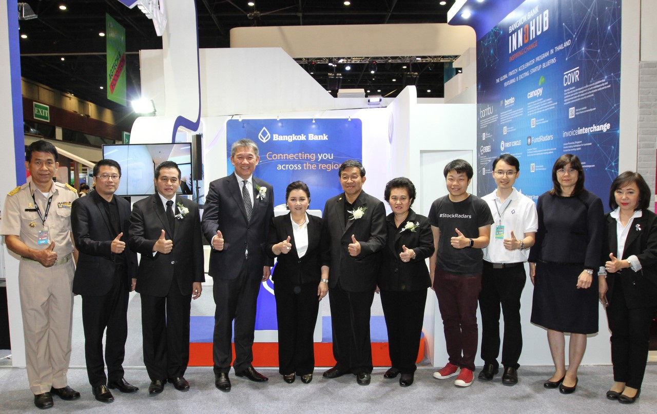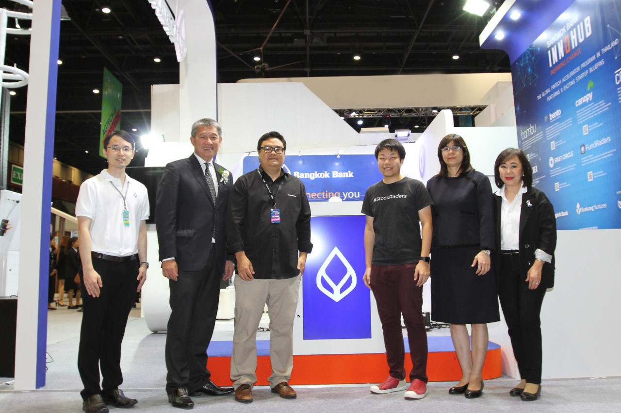 นายวีระศักดิ์ สุตัณฑวิบูลย์ (ที่ 4 จากซ้าย) รองผู้จัดการใหญ่ นางสาวธัญฑิกา โพธิสมภรณ์ (ที่ 2 จากขวา) ผู้ช่วยผู้จัดการใหญ่ ธนาคารกรุงเทพ จำกัด (มหาชน) และ‘Bluefin’ สตาร์ทอัพระดับเวิลด์คลาส ในโครงการ ‘Bangkok Bank InnoHub’ ร่วมให้การต้อนรับ นางอรรชกา สีบุญเรือง รัฐมนตรีว่าการกระทรวงวิทยาศาสตร์และเทคโนโลยี รศ.นพ.สรนิต ศิลธรรม ปลัดกระทรวงวิทยาศาสตร์และเทคโนโลยี และนายสมชัย สัจจพงษ์ ปลัดกระทรวงการคลัง ในโอกาสให้เกียรติเป็นประธานเปิดและเยี่ยมชมบูธธนาคารกรุงเทพในงาน “Startup Thailand 2017-Scale up Asia” พร้อมกันนี้ ได้ร่วมรับฟังและชื่นชมโครงการ ‘Bangkok Bank InnoHub’ รวมถึงผลงานและศักยภาพของ‘Bluefin’ สตาร์ทอัพในโครงการฯ