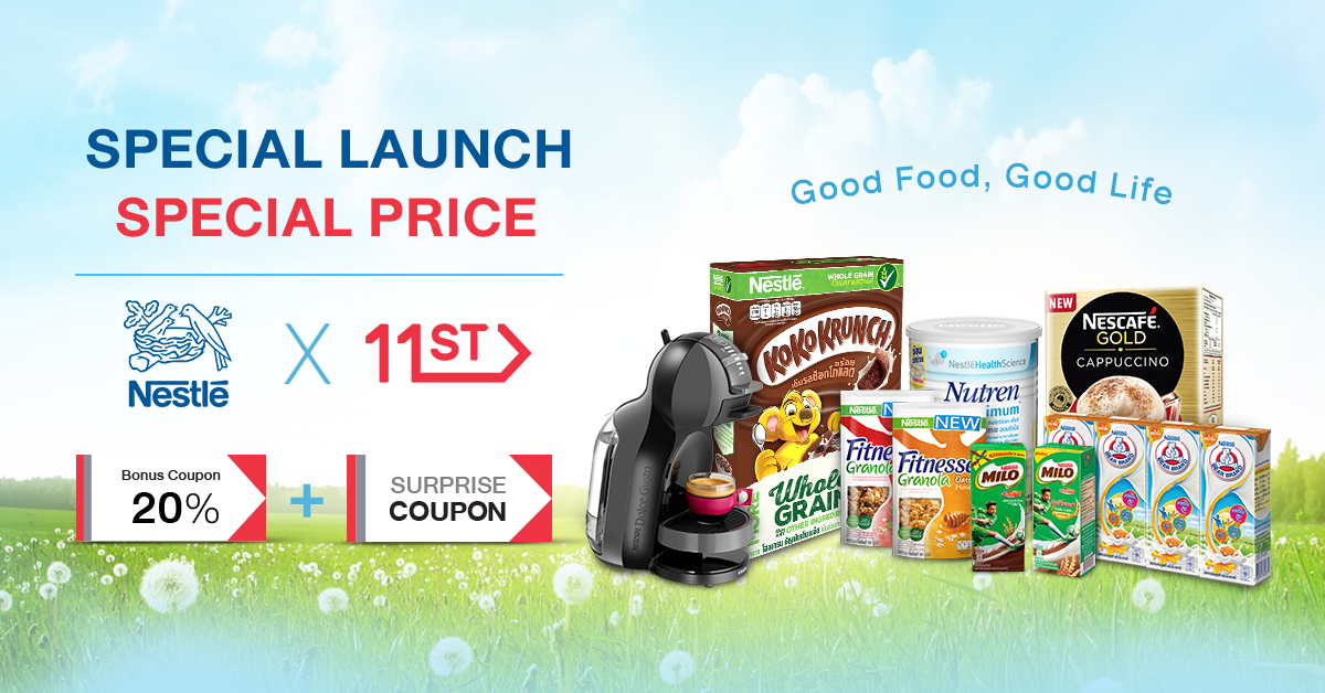 - “เนสท์เล่ เปิดตัวครั้งแรกที่ 11street” 10 - 16 กรกฏาคม2560 นี้ ฉลองเปิดตัวด้วยโปรโมชั่นสุดพิเศษ แจกโบนัสคูปอง 20% กับหลากหลายสินค้า อาทิ เนสกาแฟ ไมโลอาหารเสริมนิวเทรน นมตราหมี โกโก้ครั้นช์ เนสท์เล่ฟิตเนสส์กราโนล่า แถมฟรีบริการจัดส่ง