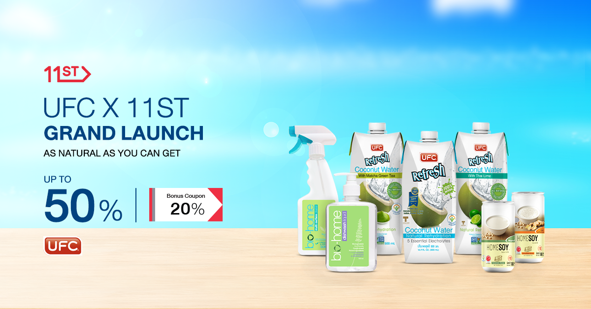 - “UFC X 11street” สินค้าเพื่อสุขภาพจากยูเอฟซี ทั้งน้ำมะพร้าวแท้ 100% น้ำนมถั่วเหลืองโฮมซอย และอื่นๆ ที่มาในราคาลดพิเศษ พร้อมดาวน์โหลดโบนัสคูปองลด 20% ได้ตั้งแต่วันนี้ – 9 กรกฎาคม 2560 พร้อมบริการจัดส่งฟรี