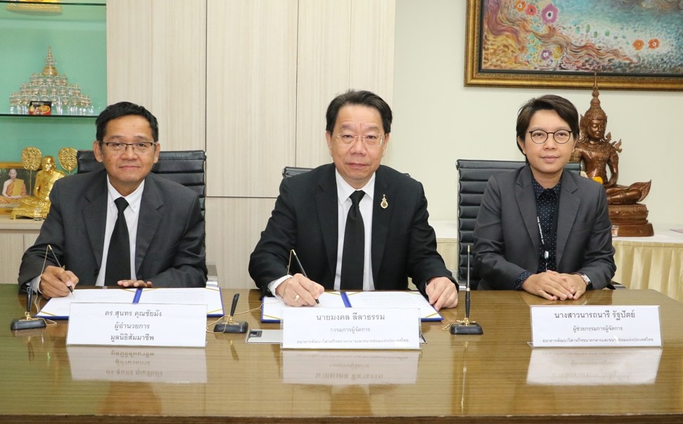 นายมงคล ลีลาธรรม กรรมการผู้จัดการ ธนาคารพัฒนาวิสาหกิจขนาดกลางและขนาดย่อมแห่งประเทศไทย (SME Development Bank หรือ ธพว.) ลงนามบันทึกข้อตกลงความร่วมมือกับ ดร.สุนทร คุณชัยมัง ผู้อำนวยการมูลนิธิสัมมาชีพ เพื่อร่วมมือในการพัฒนาเศรษฐกิจชุมชนระดับท้องถิ่น เปิดโอกาสให้ผู้ประกอบการ สมาชิก เข้าถึงแหล่งทุนทั้งในรูปแบบสินเชื่อและร่วมลงทุน พร้อมยกระดับกลุ่มวิสาหกิจชุมชนให้เป็นผู้ประกอบการ SMEs คนตัวเล็กที่มีศักยภาพ เข้มแข็ง สามารถก้าวสู่เป็นผู้ประกอบการ Social Enterprise หรือ Social Business ต่อไป ณ SME Development Bank สำนักงานใหญ่ เมื่อเร็ว ๆ นี้