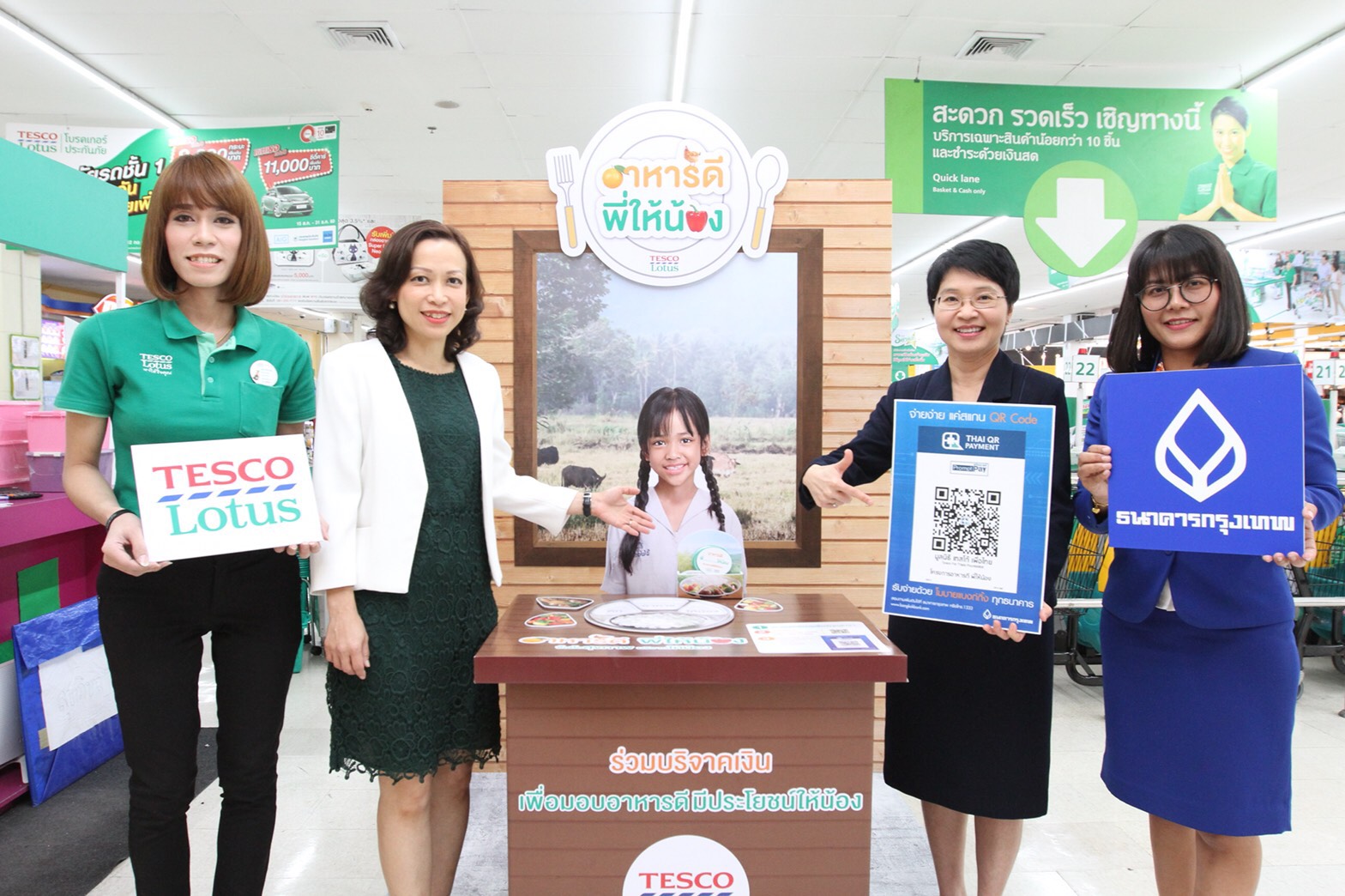 นางสาวสลิลลา สีหพันธุ์ ผู้อำนวยการฝ่ายสื่อสารองค์กร บริษัท เอก-ชัย ดิสทริบิวชั่น ซิสเต็ม จำกัด กล่าวว่า มูลนิธิเทสโก้เพื่อไทย ได้จัดแคมเปญ “อาหารดี พี่ให้น้อง” ในระหว่างวันที่ 13 –31 มกราคม พ.ศ. 2561 เพื่อเชิญชวนลูกค้าและประชาชนทั่วไปร่วมบริจาคเงินสมทบทุนซื้ออาหารที่ดีและมีประโยชน์ให้แก่เด็กผู้ยากไร้ทั่วประเทศ โดยได้ร่วมกับธนาคารกรุงเทพพัฒนาเพิ่มช่องทางรับบริจาคด้วยการสแกน ‘QR Code’ เพื่อร่วมบริจาค