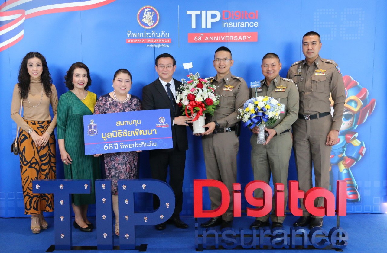 นายสมใจนึก เองตระกูล ประธานกรรมการ ดร.สมพร สืบถวิลกุล กรรมการผู้จัดการใหญ่ พร้อมด้วยคณะกรรมการบริษัท ที่ปรึกษา ผู้บริหาร และพนักงาน บมจ.ทิพยประกันภัย จัดงานครบรอบ 68 ปี ทิพยประกันภัย “Tip Digital Insurance” พร้อมรับบริจาคเงิน สมทบทุนมูลนิธิชัยพัฒนา เพื่อน้อมอุทิศถวายเป็นพระราชกุศลแด่ พระบาทสมเด็จพระบรมชนกาธิเบศร มหาภูมิพลอดุลยเดชมหาราช บรมนาถบพิตร
