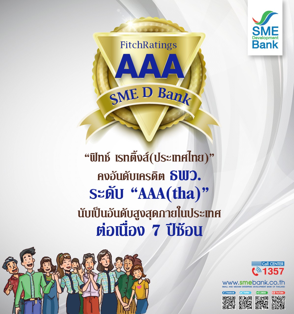รายงานจากบริษัท ฟิทช์ เรทติ้งส์ (ประเทศไทย) จำกัด ประกาศคงอันดับเครดิตภายในประเทศของ ธนาคารพัฒนาวิสาหกิจขนาดกลางและขนาดย่อมแห่งประเทศไทย (ธพว.) หรือ SME D Bank อยู่ที่ “AAA(tha)” แนวโน้มอันดับเครดิตมีเสถียรภาพ ซึ่งนับเป็นอันดับเครดิตสูงที่สุดสำหรับอันดับเครดิตภายในประเทศ และคงอันดับเครดิตระยะสั้นที่ “F1+(tha)” สะท้อนมุมมองของฟิทช์ว่าธพว.จะได้รับการสนับสนุนเป็นพิเศษนอกเหนือจากการดำเนินงานตามปรกติ (extraordinary support) จากรัฐบาลในกรณีที่มีความจำเป็น โดยพิจารณาจากสถานะทางกฎหมายของธนาคารซึ่งเป็นธนาคารรัฐที่ก่อตั้งขึ้นภายใต้พระราชบัญญัติเฉพาะเพื่อสนับสนุนนโยบายของรัฐบาล โดย ธพว.มีความสัมพันธ์ที่ใกล้ชิดกับรัฐบาลและมีสัดส่วนการถือหุ้นโดยตรงจากรัฐบาลที่ 98.9%