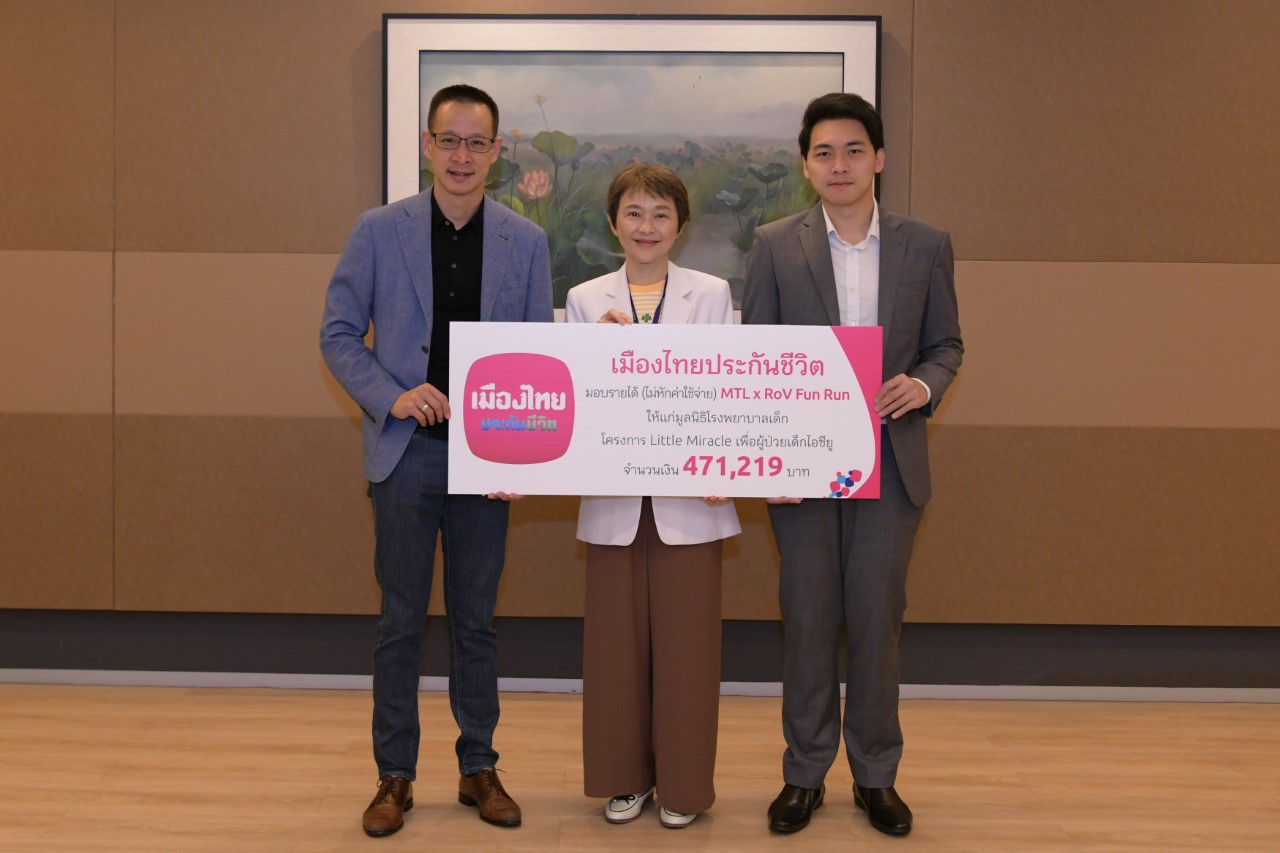 เมืองไทยประกันชีวิต มอบรายได้จากการจัดกิจกรรม MTL x ROV Fun Run แก่มูลนิธิโรงพยาบาลเด็ก โครงการ Little Miracle เพื่อผู้ป่วยเด็กไอซียู