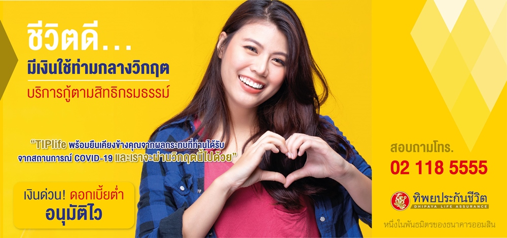 สนใจสอบถามเพิ่มเติมได้ที่ TIPlife Call Center 02-118-5555 หรือเว็บไซต์ www.dhipayalife.co.th Facebook : TIPlife ทิพยประกันชีวิต