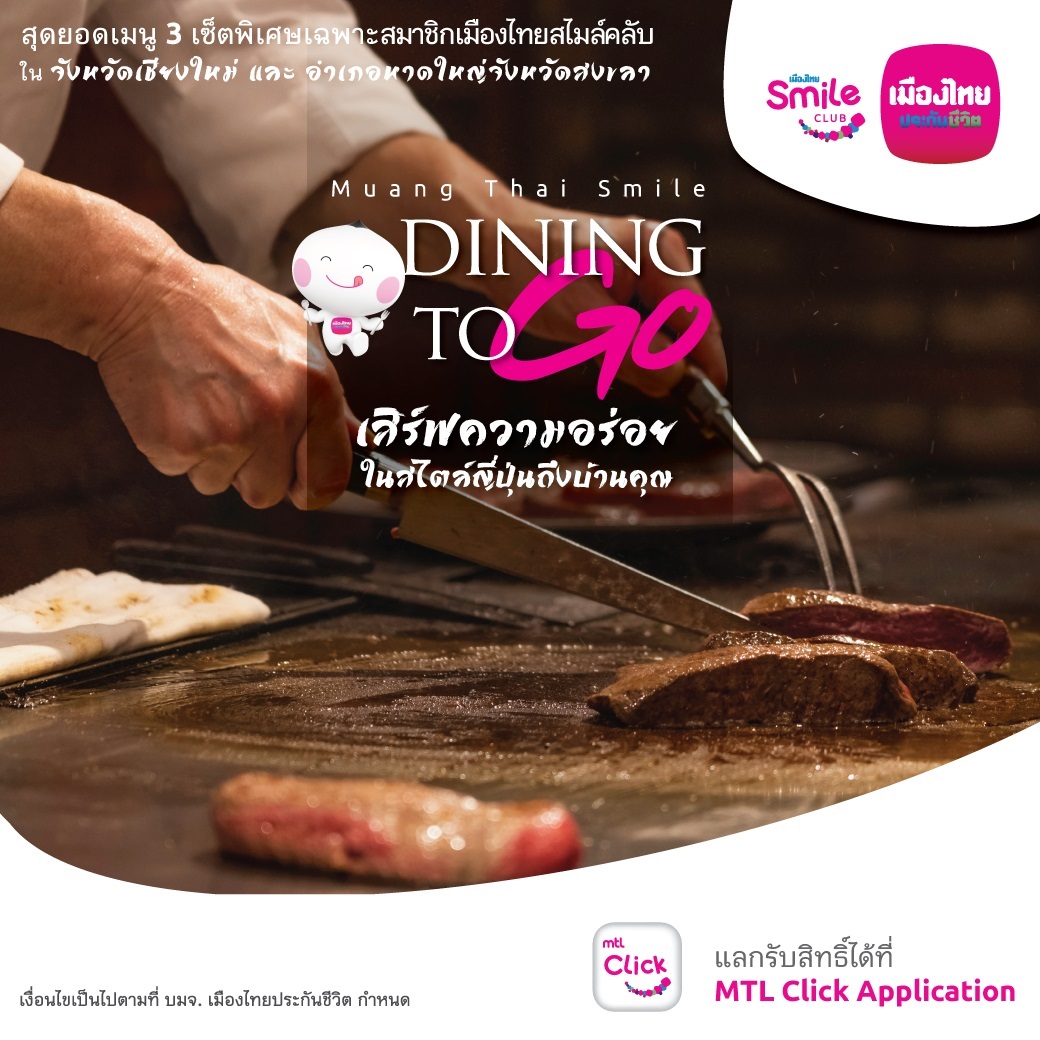ล่าสุด เมืองไทยสไมล์คลับ จัดกิจกรรม “เมืองไทย Smile Dining to go” เสิร์ฟความอร่อยในสไตล์ญี่ปุ่นสุดยอดเมนูพิเศษเฉพาะสำหรับสมาชิกเมืองไทยสไมล์คลับในพื้นที่เมืองเชียงใหม่ และหาดใหญ่ ที่ชื่นชอบการรับประทานอาหาร กับร้าน Cook with Love อาหารญี่ปุ่นชื่อดังในเมืองเชียงใหม่ ที่รังสรรค์ผ่านเมนูอาหารญี่ปุ่นคุณภาพเยี่ยมโดย เชฟไข่ ณัฎฐชัย ธาดาชนทัต ผู้คร่ำหวอดในวงการอาหารญี่ปุ่นมากกว่า10 ปี และร้าน Sushiganbattehatyai อาหารญี่ปุ่นร้านเดียวในหาดใหญ่ที่มีเชฟเป็นเจ้าของร้านเอง และมีประสบการณ์ด้านอาหารญี่ปุ่นจากต่างประเทศ สมาชิกฯ สามารถแลกคะแนนสะสม Smile Points ได้ตั้งแต่วันนี้ – 31 กรกฎาคม 2563