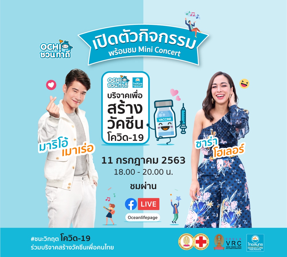 พร้อมชวน Brand Ambassador สุดฮอต “มาริโอ้ เมาเร่อ” และพิธีกรสุดฮา “ซาร่า โฮเลอร์” เปิด Mini Concert ให้ร่วมสนุกรับของรางวัลมากมาย และได้สุขใจไปกับการร่วมบริจาคสร้างวัคซีน โดยสามารถร่วมกิจกรรมได้ทาง Facebook LIVE : Oceanlifepage ในวันเสาร์ที่ 11 กรกฎาคม 2563 เวลา 18.00 เป็นต้นไป นอกจากนั้นยังมีกิจกรรมสุด Exclusive ประมูลของสะสมสุดรัก จาก “มาริโอ้ เมาเร่อ” นั่นก็คือ "มาริโอ้ กริน (Mario Grin) Limited Edition " ตุ๊กตาที่ร่วมสร้างสรรค์ขึ้นโดย มาริโอ้ เมาเร่อ และ รอน อิงลิช ศิลปินชื่อดังแห่งแบรนด์ Popaganda เพื่อสมทบทุนกิจกรรมดังกล่าว โดยผู้ชนะการประมูลจะได้รับของจากมือ มาริโอ้ เมาเร่อ!! ประมูลได้แล้วตั้งแต่วันนี้ - 10 กรกฎาคม 2563 เวลา 16.00.00 น. ติดตามรายละเอียดเพิ่มเติม และร่วมประมูลได้ที่ Facebook : Oceanlifepage