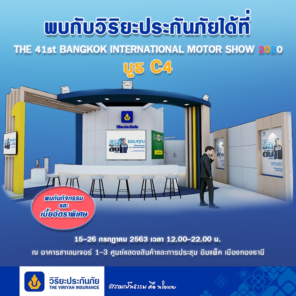 วันที่ 15 - 26 กรกฎาคมศกนี้ บมจ.วิริยะประกันภัย เตรียมความพิเศษมามอบให้แก่ลูกค้าและผู้เข้าร่วมชมงาน “บางกอก อินเตอร์เนชั่นแนล มอเตอร์โชว์ ครั้งที่ 41” ซึ่งในปีนี้วิริยะประกันภัยร่วมจัดแสดงบูธในตำแหน่ง C4 ภายใต้แนวคิด “ขอบคุณที่ทำให้เราเป็นอันดับ 1 ตลอดมา" พร้อมนำผลิตภัณฑ์มอเตอร์และนอนมอเตอร์มานำเสนอแก่ผู้เข้าชมงาน รวมถึงสิทธิพิเศษส่วนลดเบี้ยประกันภัย และของสมนาคุณมากมาย เฉพาะภายในงานเท่านั้น ณ อาคารชาเลนเจอร์ 1-3 ศูนย์แสดงสินค้าและการประชุม อิมแพ็ค เมืองทองธานี