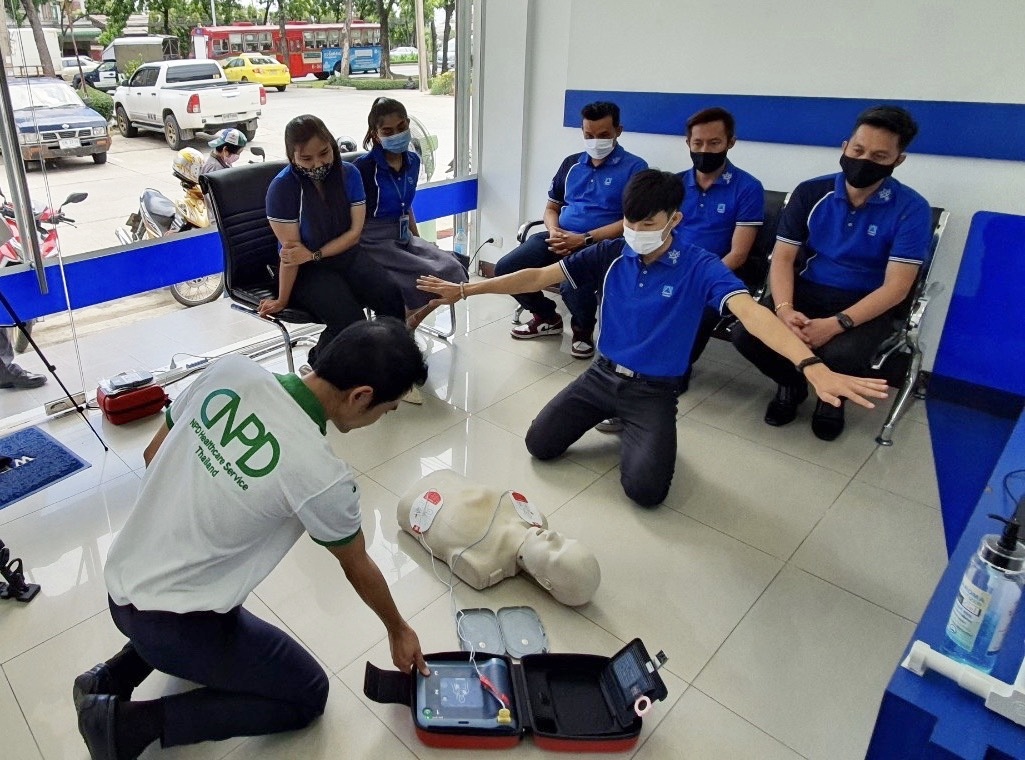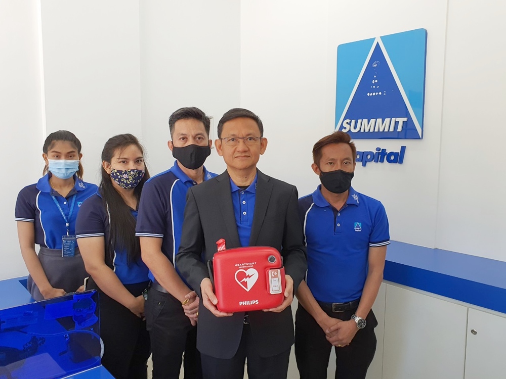 เครื่องกระตุกหัวใจด้วยไฟฟ้าชนิดอัตโนมัติ เป็นอุปกรณ์ที่สามารถวินิจฉัยภาวะหัวใจเต้นผิดจังหวะที่เป็นอันตรายถึงชีวิต และให้การรักษาด้วยการช็อกไฟฟ้า ให้หัวใจกลับมาเต้นในจังหวะที่ถูกต้อง ทั้งนี้ ซัมมิท แคปปิตอล ได้จัดให้มีการอบรมให้พนักงานตัวแทนประจำสำนักงานต่างๆ ให้รู้จักวิธีใช้เครื่องอย่างถูกต้อง เพื่อให้สามารถนำมาใช้ได้อย่างทันท่วงทีหากเกิดเหตุฉุกเฉินในบริษัท หรือหากประสบเหตุในสถานที่อื่นก็สามารถนำเครื่องที่ติดตั้งไว้ในบริเวณนั้นมาใช้ช่วยชีวิตผู้อื่นได้