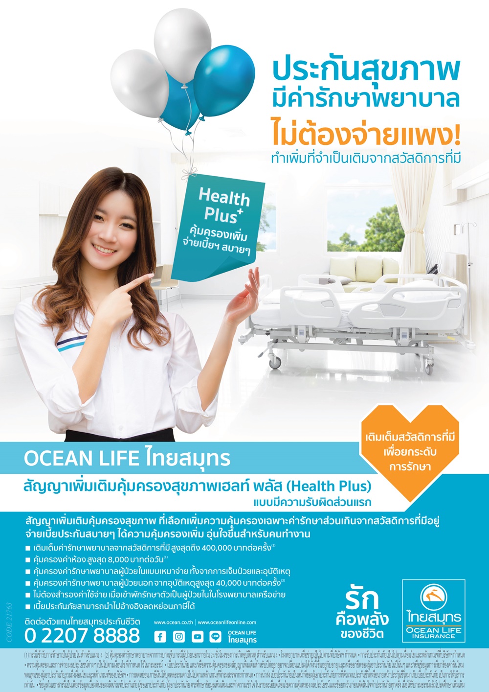 บมจ.ไทยสมุทรประกันชีวิต รักคือพลังของชีวิต โดยคุณนุสรา (อัสสกุล) บัญญัติปิยพจน์ กรรมการผู้จัดการ ตระหนักถึงปัญหาค่าใช้จ่ายในการรักษาพยาบาลที่มีแนวโน้มสูงขึ้นในปัจจุบัน โดยแนะนำสัญญาเพิ่มเติมคุ้มครองสุขภาพเฮลท์ พลัส (Health Plus) แบบมีความรับผิดส่วนแรก ด้วยการเพิ่มความคุ้มครองเฉพาะค่ารักษาส่วนเกินจากสวัสดิการหรือประกันสุขภาพที่มีอยู่แล้ว เพื่อเป็นตัวเลือกให้คนทำงานอุ่นใจ พร้อมช่วยยกระดับการรักษาให้ดียิ่งขึ้น ด้วยเบี้ยประกันที่จ่ายได้สบาย ๆ รับความคุ้มครองค่ารักษาพยาบาลผู้ป่วยในแบบเหมาจ่ายสูงสุด 400,000 บาทต่อครั้ง* คุ้มครองค่าห้องสูงสุด 8,000 บาทต่อวัน** ครอบคลุมค่ารักษาพยาบาลผู้ป่วยในแบบเหมาจ่ายทั้งจากการเจ็บป่วยและอุบัติเหตุ และคุ้มครองค่ารักษาพยาบาลผู้ป่วยนอกจากอุบัติเหตุสูงสุด 40,000 บาทต่อครั้ง** โดยไม่ต้องสำรองค่าใช้จ่ายเมื่อเข้าพักรักษาตัวเป็นผู้ป่วยในในโรงพยาบาลเครือข่าย รับประกันภัยตั้งแต่อายุ 20 - 70 ปี โดยเบี้ยประกันชีวิตสามารถนำไปอ้างอิงลดหย่อนภาษีเงินได้บุคคลธรรมดาได้ตามหลักเกณฑ์ที่กรมสรรพากรกำหนด