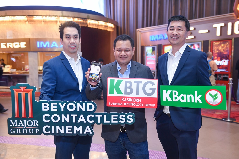 นายเรืองโรจน์ พูนผล ประธาน กสิกร บิซิเนส-เทคโนโลยี กรุ๊ป (KBTG) เปิดเผยว่า KBTG ร่วมมือกับบมจ.เมจอร์ ซีนีเพล็กซ์ กรุ้ป ผู้นำด้านการให้บริการโรงภาพยนตร์ ในการนำเทคโนโลยีไร้สัมผัส (Contactless Technology) ผ่านตู้จำหน่ายตั๋วหนังอัตโนมัติ E-Ticket ต่อยอดประสบการณ์การเข้าชมภาพยนตร์และอำนวยความสะดวกให้กับลูกค้า เพื่อตอบโจทย์ไลฟ์สไตล์ยุคใหม่เเละเสริมสร้างประสบการณ์ของลูกค้าด้วยเทคโนโลยีจากธนาคารกสิกรไทย และ KBTG โดยลูกค้าสามารถเลือกชมภาพยนตร์ จำนวนที่นั่ง ชำระเงิน รับตั๋วชมภาพยนตร์ผ่านระบบของตู้จำหน่ายตั๋วหนังอัตโนมัติ ซึ่งจะแสดง QR Code เพื่อให้ลูกค้าใช้สมาร์ทโฟนสแกนรับตั๋วแทนการใช้กระดาษ (Paperless) เพื่อเข้าชมภาพยนตร์