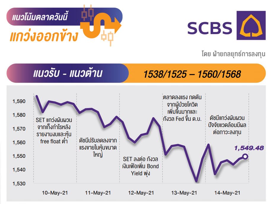 คาดดัชนีรีบาวด์ทางเทคนิคได้ โดยจะได้ Sentiment เชิงบวกจากตลาดต่างประเทศที่ฟื้นตัว หลัง bond yield สหรัฐ ชะลอตัว อย่างไรก็ตาม มองกรอบบนยังถูกจำกัด และดัชนียังมีความผันผวน โดยวันนี้คาดเคลื่อนไหวในกรอบ 1525-1568 จุด ด้านภาพรวมดัชนีอยู่ในช่วงปรับฐาน กลยุทธ์ อาศัยจังหวะดัชนีฟื้นตัวกระชับพอร์ต ลดหุ้นให้เหลือน้อยตัว ส่วนการเข้าซื้อช่วงนี้ เน้น Selective Buy ในหุ้น Defensive