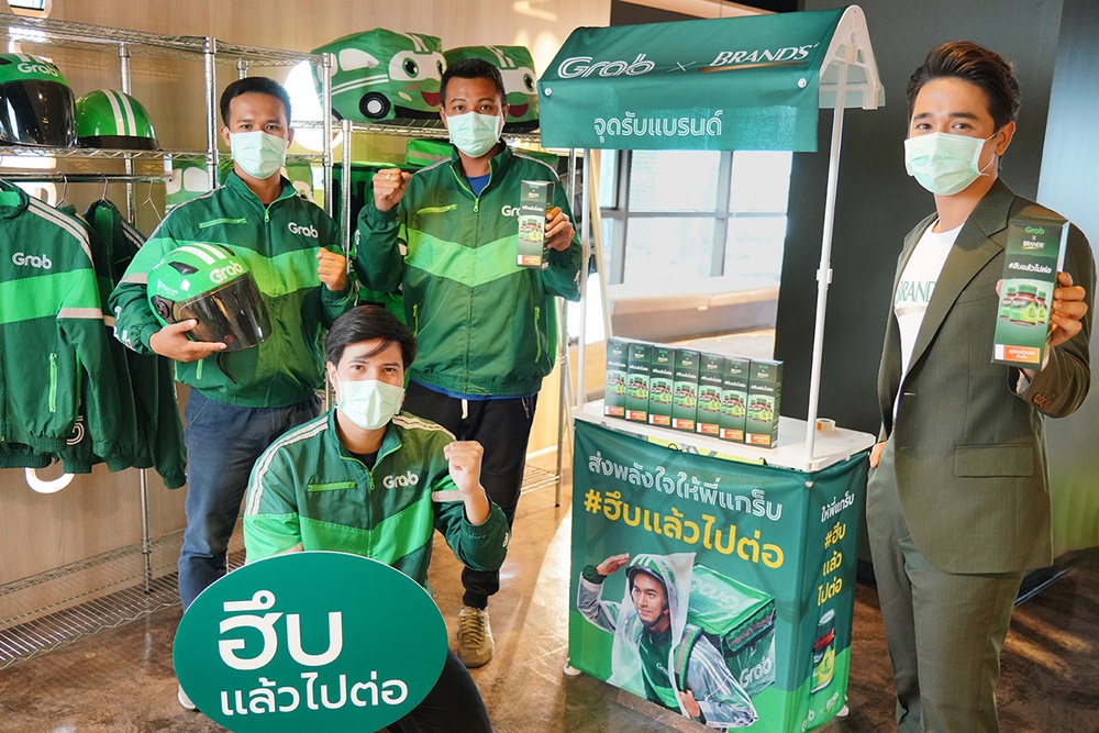 นอกเหนือจากโมเมนต์น่ารักๆ ของพี่คนขับที่ปรากฏในโลกออนไลน์แล้ว ยังมีเรื่องราวน่าประทับใจอีกมากมายที่ยังไม่ได้ถูกหยิบยกขึ้นมาพูดถึง แกร็บ จึงได้เชิญชวนผู้ใช้บริการร่วมบอกเล่าประสบการณ์ส่วนตัว พร้อมส่งต่อกำลังใจให้แก่เหล่าพาร์ทเนอร์คนขับ พร้อมติดแฮชแท็ก #ฮึบแล้วไปต่อ โดยแกร็บได้จับมือกับ แบรนด์ ซันโทรี่ เพื่อมอบ “แบรนด์ซุปไก่สกัด” จำนวน 240,000 ขวดให้แก่พาร์ทเนอร์คนขับทั่วประเทศ ซึ่งตอกย้ำแนวคิด “เมื่อต้อง ‘ฮึบ’ สูดหายใจแล้วดื่มแบรนด์” ของแคมเปญ “ฮึบแล้วไปต่อ” ที่ต้องการเป็นส่วนหนึ่งที่ช่วยผลักดันให้ทุกคนที่ต้องเผชิญกับโมเมนต์ที่ยากลำบาก เหนื่อยล้าและหมดแรงใจ ให้ลุกขึ้นมาฮึบสู้ได้อีกครั้ง