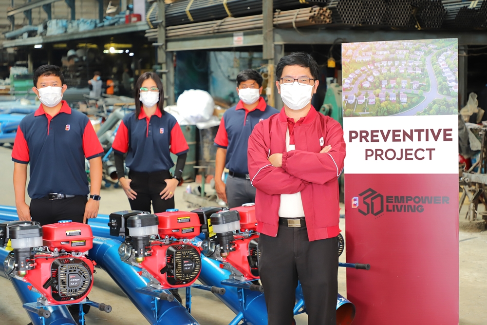 นายบุญชัย จันทร์กระจ่างเลิศ รองกรรมการผู้อำนวยการ บมจ. เอพี (ไทยแลนด์) เข้าตรวจรับเครื่องสูบน้ำในล็อตแรกที่จะนำเข้ามาเป็นกำลังเสริมเตรียมพร้อมรับมือกับอุทกภัย รวมจำนวนกว่า 70 เครื่อง ซึ่งเป็นหนึ่งในแผนรับมือภาวะฉุกเฉินของทางบริษัทฯ เพื่อเตรียมสนับสนุนและป้องกันอุทกภัยที่อาจส่งผลกระทบต่อการอยู่อาศัยให้กับลูกบ้านในโครงการเครือเอพีที่อยู่ในเขตพื้นที่แนวริมน้ำเจ้าพระยา