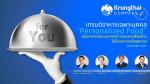 ศูนย์วิจัยธนาคารกรุงไทย ชี้เทรนด์อาหารเฉพาะบุคคล (Personalized Food) เป็นโอกาสของอุตสาหกรรมอาหารแปรรูปในการสร้างมูลค่าเพิ่มให้กับผลิตภัณฑ์ รองรับพฤติกรรมผู้บริโภคที่ต้องการสารอาหารและรูปแบบอาหารที่ตอบโจทย์ความต้องการเฉพาะบุคคลมากขึ้น คาดมูลค่าตลาด Personalized Food ในไทยสามารถเติบโตได้เฉลี่ยสูงถึงปีละ 14.2% หรือแตะระดับ 5.5 หมื่นล้านบาท ในปี 2025 แนะผู้ประกอบการบุกตลาดผู้บริโภคที่มีความเฉพาะระดับกลุ่มบุคคลก่อน ได้แก่ กลุ่มผู้ควบคุมน้ำหนัก กลุ่มผู้เป็นโรคไม่ติดต่อเรื้อรัง และกลุ่มผู้สูงอายุ รวมทั้งควรสร้างความร่วมมือกับหน่วยงานที่เชี่ยวชาญในด้านสุขภาพและโภชนาการ