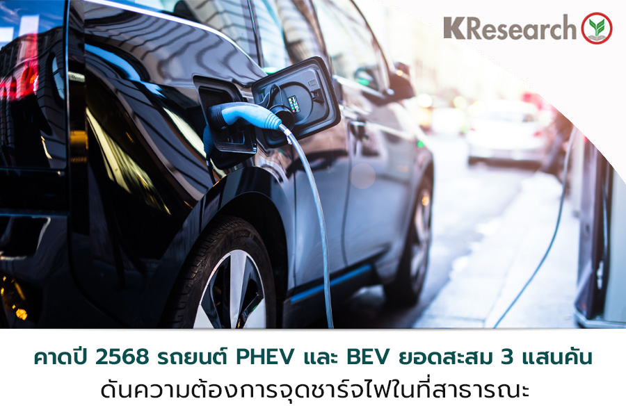 ไทยกำลังเปลี่ยนผ่านไปสู่สังคมรถยนต์พลังงานสะอาด โดยศูนย์วิจัยกสิกรไทยมองว่า ในปี 2568 มีโอกาสที่รถยนต์ PHEV และ BEV สะสมในประเทศอาจพุ่งไปสูงถึง 300,000 คัน แสดงให้เห็นถึงความต้องการชาร์จไฟฟ้าในประเทศที่จะเร่งตัวขึ้นนับจากนี้ การพัฒนา Ecosystem อย่างจุดชาร์จไฟฟ้าในที่สาธารณะจึงเป็นสิ่งจำเป็นเร่งด่วน ซึ่งหากเทียบเคียงกับกรณีต่างประเทศ จำนวนจุดชาร์จไฟสาธารณะทั่วประเทศอาจควรมีสะสมไม่น้อยกว่า 19,000 ช่องจอด แบ่งเป็นในเขตกรุงเทพฯและปริมณฑลไม่ต่ำกว่า 14,000 ช่องจอด เพื่อรองรับปริมาณรถยนต์เสียบปลั๊กไฟฟ้าสะสมที่เพิ่มขึ้นดังกล่าว อย่างไรก็ดี แม้จะคาดว่าจำนวนจุดชาร์จไฟสาธารณะน่าจะมีแนวโน้มเร่งตัวขึ้นมากดังกล่าว แต่เมื่อผู้ซื้อรถยนต์ PHEV และ BEV ยุคบุกเบิกนี้ ส่วนใหญ่เป็นกลุ่มที่มีแนวโน้มติดตั้ง Wall Charger ส่วนตัวในที่พัก ทำให้โอกาสที่จะใช้จุดชาร์จนอกบ้านยิ่งน้อยลง ศูนย์วิจัยกสิกรไทยจึงมองว่า จนถึงปี 2568 จำนวนช่องจอดชาร์จไฟสาธารณะสะสมอาจจะต่ำกว่าตัวเลขที่มองไว้ข้างต้นได้ ซึ่งผู้ประกอบการที่มีแผนจะลงทุนอาจต้องพิจารณาในการเลือกพื้นที่ติดตั้งที่คุ้มค่าให้ดีโดยเฉพาะในเขตกรุงเทพฯ เพื่อลดความเสี่ยงต่างๆที่ต้องเจอรวมถึงปัญหาการขาดสภาพคล่องทางการเงิน โดยกลุ่มที่คาดว่าจะก้าวเข้ามาลงทุนได้ก่อนและมีโอกาสอยู่รอดจนผ่านช่วงยากลำบากนี้ไปได้ คือ กลุ่มที่อยู่ในธุรกิจที่เกี่ยวข้องโดยตรงและมีสายป่านทางการเงินยาว เช่น ธุรกิจพลังงาน ห้างสรรพสินค้า ธุรกิจค้าปลีกขนาดใหญ่ และโรงแรม เป็นต้น