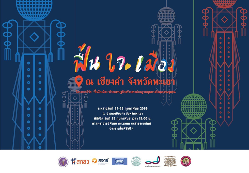 ขอเชิญร่วมมหกรรม “ฟื้นใจเมือง” ด้วย “เศรษฐกิจสร้างสรรค์ บนฐานทุนทางวัฒนธรรมชุมชน” ในระหว่างวันที่ 24-26 กุมภาพันธ์ 2566 ณ ข่วงวัฒนธรรม สวนสุขภาพ 100 ปี อ.เชียงคำ จ.พะเยา โดยมีศาสตราจารย์พิเศษ ดร.เอนก เหล่าธรรมทัศน์ รัฐมนตรีว่าการกระทรวงการอุดมศึกษา วิทยาศาสตร์ วิจัยและนวัตกรรม เป็นประธานกล่าวเปิดงานอย่างเป็นทางการ ในวันที่ 25 กุมภาพันธ์ 2566 เวลา 15.30 น. เป็นต้นไป