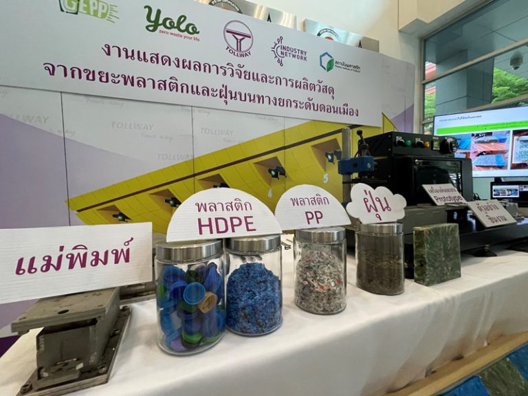นายนพพล ให้ข้อมูลต่อว่า นอกจากนี้ บริษัทอยู่ระหว่างการสร้าง Ecosystem โดยในปีที่ผ่านมาบริษัทได้นำฝุ่นที่มาจากการดูดกวาดบนสายทางในแต่ละวัน มาผสมกับขยะพลาสติกทั้งหมด 5 ประเภทคือ HDPE, PP, PS, PET และพลาสติกรวม โดยในการทดลองนั้นจะปรับสัดส่วนของฝุ่นและปริมาณพลาสติกแต่ละประเภท เพื่อหาแนวทางการขึ้นรูปผลิตอิฐก้อนหรือแผ่นกระเบื้อง และนำไปทดสอบความแข็งแรงทนทานผ่านการรับรองจากสถาบัน ซึ่งปัจจุบันบริษัทได้ดำเนินการเสนอจดสิทธิบัตรเรียบร้อยแล้ว