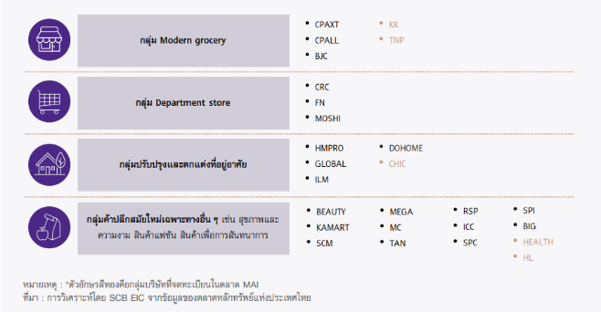 หมายเหตุ : *ตัวอักษรสีทองคือกลุ่มบริษัทที่จดทะเบียนในตลาด MAI