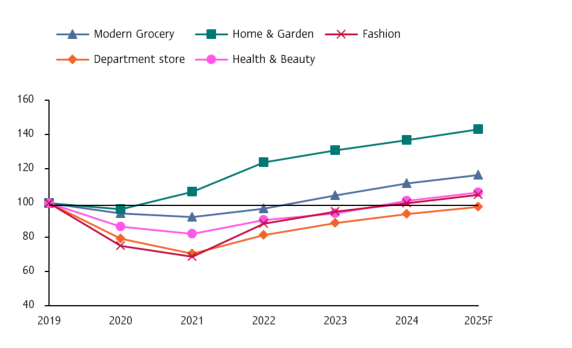 กลุ่มธุรกิจ Modern trade ต้องปรับตัวท่ามกลางการแข่งขันจากร้านค้าออนไลน์ รวมทั้งต้นทุนสินค้าและการดำเนินงานที่สูงขึ้น
