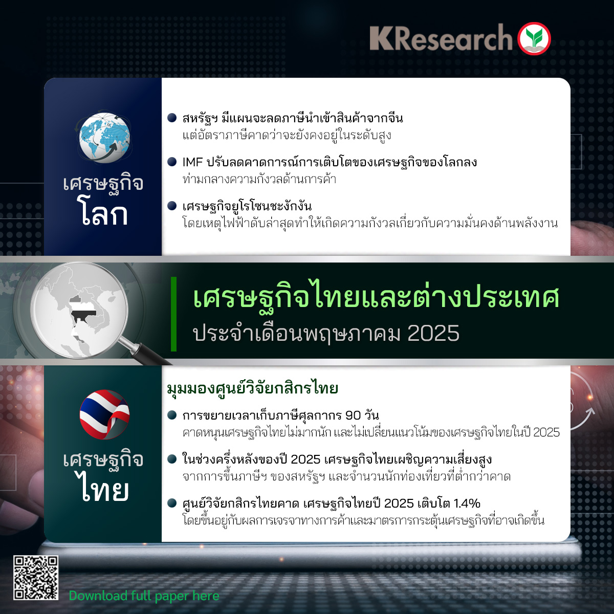 • การขยายเวลาเก็บภาษีศุลกากร 90 วัน คาดหนุนเศรษฐกิจไทยไม่มากนัก และไม่เปลี่ยนแนวโน้มของเศรษฐกิจไทยในปี 2025