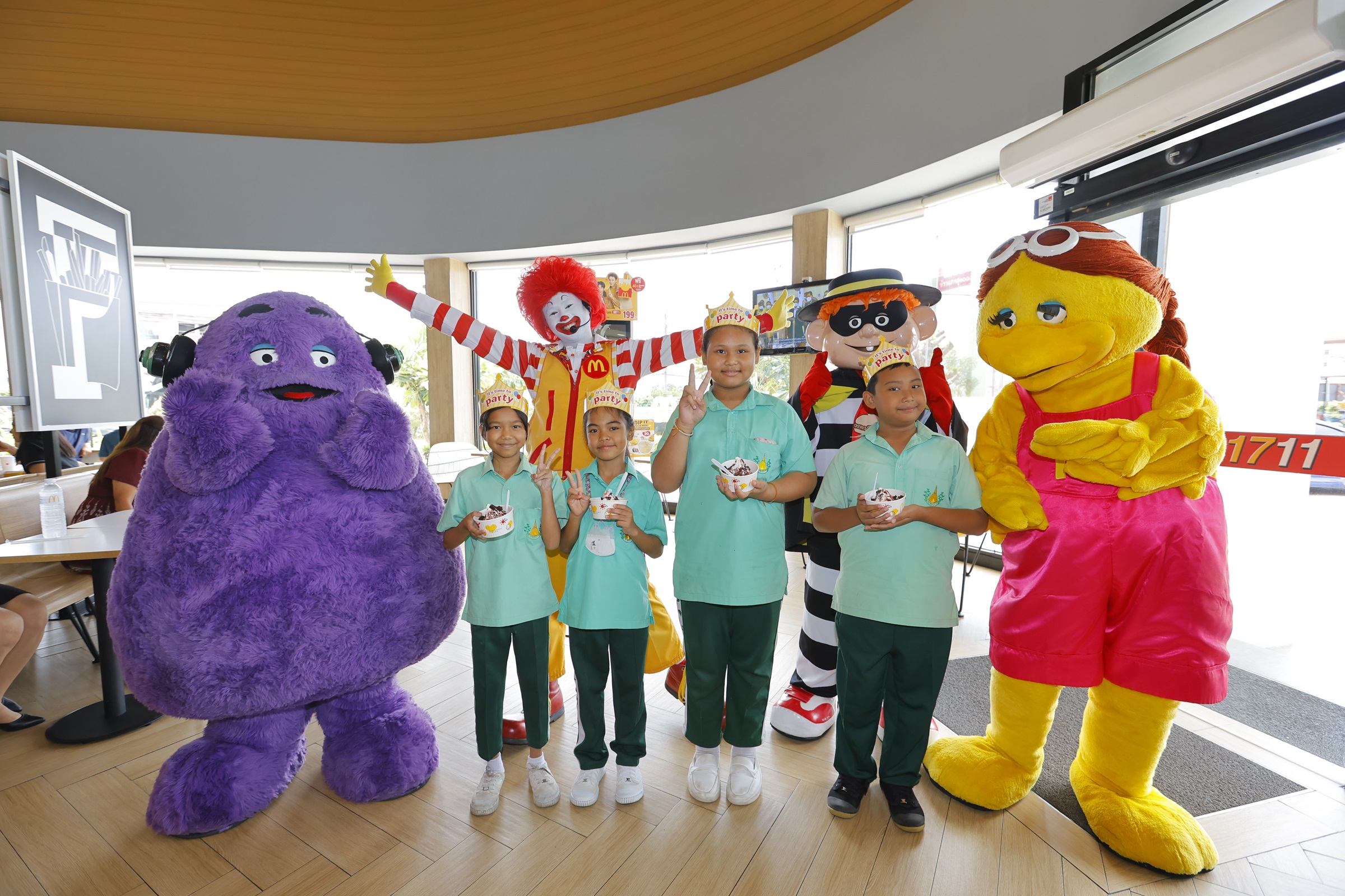 ในโอกาสฉลองครบรอบ 40 ปี ของแมคโดนัลด์ ประเทศไทย โครงการพัฒนาสังคม ‘McHappy Smile’ ผนึกความร่วมมือกับสำนักงานคณะกรรมการการศึกษาขั้นพื้นฐาน (สพฐ.) และสำนักงานกองทุนเพื่อโครงการอาหารกลางวันในโรงเรียนประถมศึกษา เพื่อเข้าถึงโรงเรียนระดับชั้นประถมศึกษาภายใต้สังกัด สพฐ. ครอบคลุม 4 ภูมิภาคทั่วประเทศ โดยในปีนี้ โครงการพัฒนาสังคม ‘McHappy Smile’ ได้เริ่มต้นที่พื้นที่ภาคกลาง โดยมีน้องๆ จากโรงเรียนวัดไผ่ล้อม (พูลประชาอุปถัมภ์) จ.นครปฐม กว่า 100 คนเข้าร่วมกิจกรรม ก่อนจะยกขบวนสู่ จ.นครศรีธรรมราช (ภาคใต้), จ.ชลบุรี (ภาคตะวันออก) และ จ.พิษณุโลก (ภาคเหนือ) ตั้งเป้าส่งมอบความสุขและรอยยิ้มให้เด็กและเยาวชนกว่า 400 คน พร้อมด้วยพลังพนักงานจิตอาสาจากแมคโดนัลด์ที่ร่วมกิจกรรมถึง 600 ชั่วโมง นอกจากนั้น ในปีนี้โครงการ ‘McHappy Smile’ ยังมีการสนับสนุนอุปกรณ์กีฬาหรืออุปกรณ์การเรียนรู้ที่จำเป็นเพื่อสร้างทักษะและการเรียนรู้ให้กับนักเรียนในโรงเรียนที่เข้าร่วมอีกด้วย