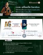 • ก.ล.ต. เตรียมจัดตั้ง Sandbox เพื่อให้นักท่องเที่ยวนำ Digital Assets (DA) มาแลกเปลี่ยนเป็นเงินบาทเพื่ออำนวยความสะดวกในช่วงที่เข้ามาท่องเที่ยวและใช้จ่ายในประเทศไทย เนื่องจากในช่วงที่ผ่านมา DA ได้รับความนิยมและมีการถือครองมากขึ้นทั่วโลกทั้งในแง่จำนวนผู้ถือครองและมูลค่า โดย Sandbox นี้เป็นโครงการระยะไม่เกิน 18 เดือน หลังจากที่สำนักงาน ก.ล.ต. เห็นชอบ