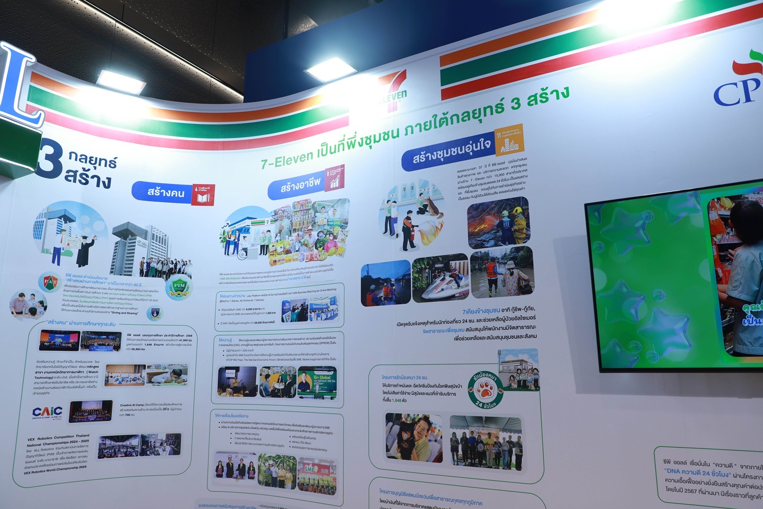 โดยซีพี ออลล์ได้นำเสนอกลยุทธ์ 3 สร้าง ได้แก่ สร้างคน ผ่านการศึกษา ให้โอกาสมีงานทำ ส่งเสริมทักษะผู้ประกอบการ และการเรียนรู้ตลอดชีวิต สร้างอาชีพ ผ่านกลยุทธ์ 3 ให้ (ให้ช่องทางขาย ให้ความรู้ ให้การเชื่อมโยงเครือข่าย) และการจ้างงานกว่า 2 แสนอัตรา กระจายโอกาสไปยังชุมชน ผู้สูงวัย กลุ่มเปราะบาง สร้างชุมชนอุ่นใจ ในฐานะร้านเซเว่นฯ และพนักงานทุกคนเป็นส่วนหนึ่งของชุมชน สร้างมิตรภาพที่เข้าถึงง่าย เป็นกันเอง อบอุ่น ปลอดภัย และ DNA ความดี 24 ชั่วโมง ที่ปลูกฝังให้บุคลากรทุกคนเป็นคนดีสร้างประโยชน์ให้ประเทศชาติ ประชาชน และองค์กร ตามค่านิยม 3 ประโยชน์ของเครือเจริญโภคภัณฑ์