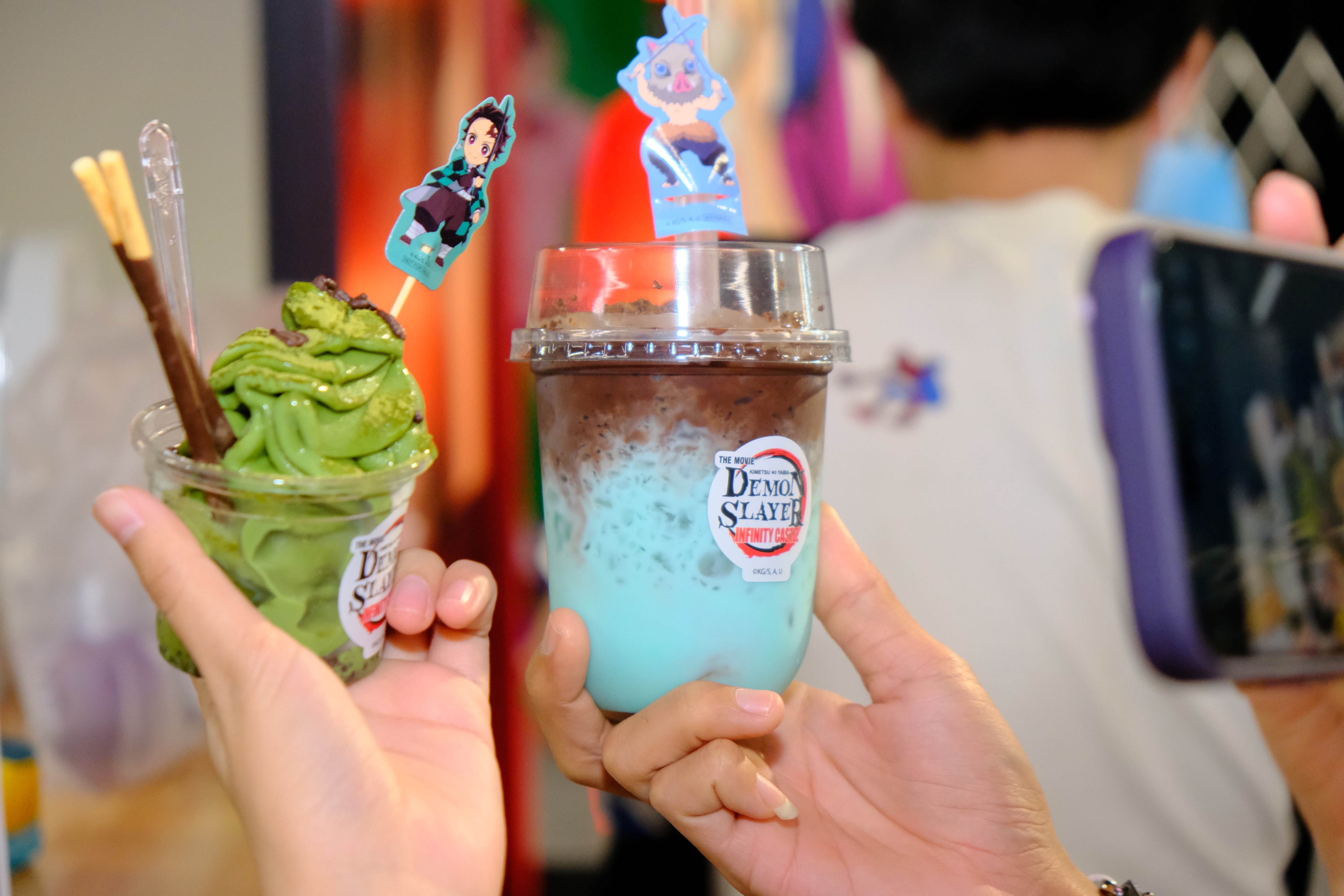 โซน คาเฟ่ : ดื่มด่ำกับ 5 เมนูสุดพิเศษที่ได้รับแรงบันดาลใจจากคาแรกเตอร์ DEMON SLAYER พร้อมแผ่นรองแก้วสุดลิมิเต็ด ยกมาทั้งทีมนักล่าอสูร ทีมเสาหลัก ทีมอสูรข้างขึ้น ราชันของเหล่าอสูรสุดแข็งแกร่ง ที่มีขายเฉพาะงานนี้