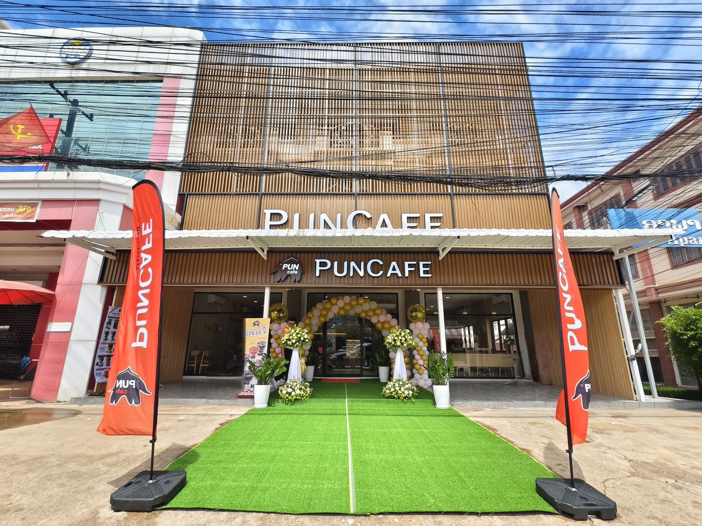 ปันคาเฟ่ สาขาบ้านฮ่องแก ตั้งอยู่บนทำเลศักยภาพใจกลางเมือง พร้อมให้บริการความอร่อยทุกวัน ตั้งแต่เวลา 07.00 –20.00 น. ด้วยเมนูหลากหลายครอบคลุมทั้งเครื่องดื่มซิกเนเจอร์จากพันธุ์ไทย อาหารเช้าที่สามารถทานได้ทั้งวัน อย่างไข่กระทะ เบเกอรี แซนวิช อาหารทานเล่น เมนูยำต่าง ๆ อาหารจานหลักอย่างเมนูข้าว สปาเกตตี้ และเมนูที่ใช้วัตถุดิบท้องถิ่น อย่างเส้นข้าวเปียก ก็พร้อมเสิร์ฟเร็ว ๆ นี้ รวมไปถึงสินค้าพรีเมียม เช่น แก้วทัมเบลอร์ กระเป๋าหลากสไตล์ ที่เหมาะสำหรับซื้อเป็นของฝากได้ ทั้งนี้เพื่อความสะดวกของลูกค้าและนักท่องเที่ยว ทางร้านจัดได้ทำสื่อประชาสัมพันธ์หลายภาษา ทั้งภาษาลาว ภาษาอังกฤษ และภาษาจีน ภายในร้านตกแต่งโทนอบอุ่น ทันสมัย สามารถรองรับลูกค้าได้มากกว่า 40 ที่นั่ง ทั้งโซนในร่มและกลางแจ้ง รวมถึงมีห้องประชุมขนาด 8 ที่นั่ง สำหรับกลุ่มลูกค้าที่ต้องการพื้นที่ส่วนตัว นอกจากนี้ยังมีที่จอดรถสะดวกสบาย พร้อมบริการฟรี Wi-Fi และในอนาคต ปันคาเฟ่ ยังวางแผนขยายบริการจัดอาหารว่างหรือสแน็คบ๊อกซ์สำหรับหน่วยงานราชการและลูกค้าที่จัดงานเลี้ยงหรือประชุม รวมถึงบริการออกบูธนอกสถานที่อีกด้วย