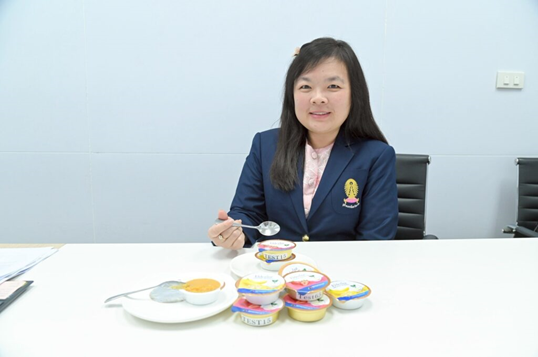 “งานวิจัยพัฒนาสูตรเจลลี่พุดดิ้งโปรตีนสูงใช้เวลานานกว่า 1 ปี ผ่านกระบวนการต่าง ๆ ในห้องปฏิบัติการ มีการวิจัยทดลองดัดแปลงเนื้อสัมผัสและเพิ่มคุณค่าทางโภชนาการ ปรับสัดส่วนของวัตถุดิบ รสชาติ การตรวจสอบเนื้อสัมผัส ประเมินการยอมรับของผลิตภัณฑ์ในอาสาสมัครที่เป็นผู้สูงอายุ 30 คน จนถึงการปรับใช้เทคโนโลยีของการผลิตที่ตอบโจทย์ผลิตภัณฑ์ให้ดีที่สุด” ผศ.ดร.วรัญญากล่าว