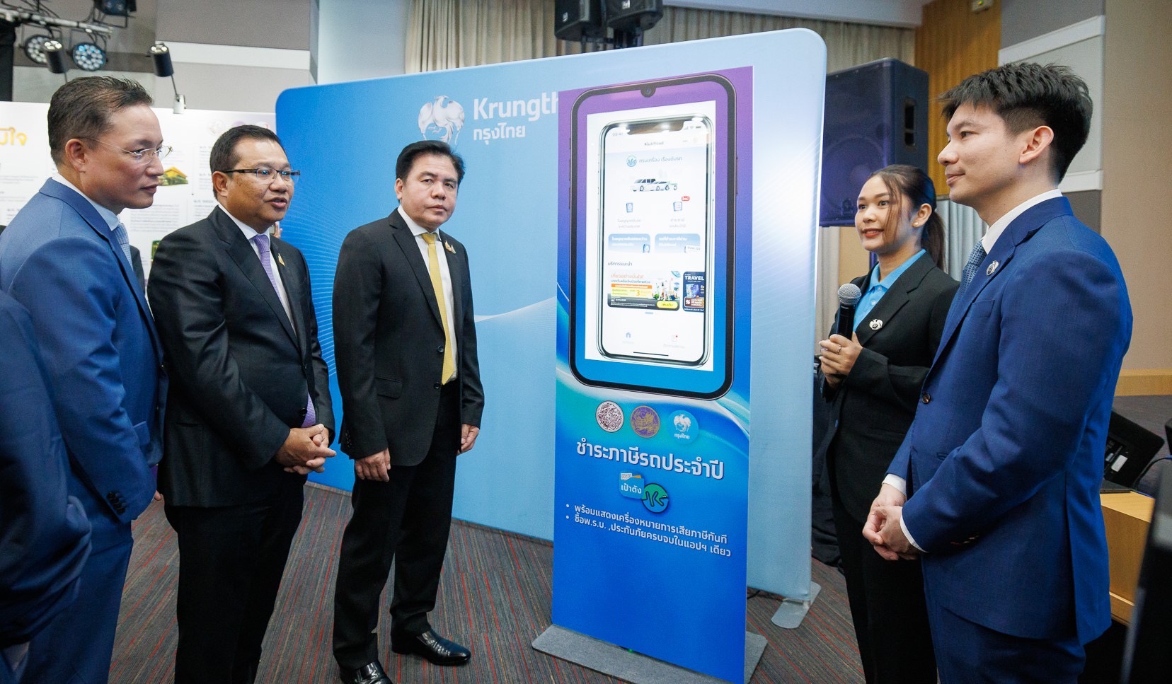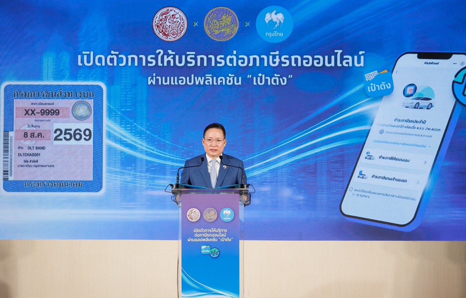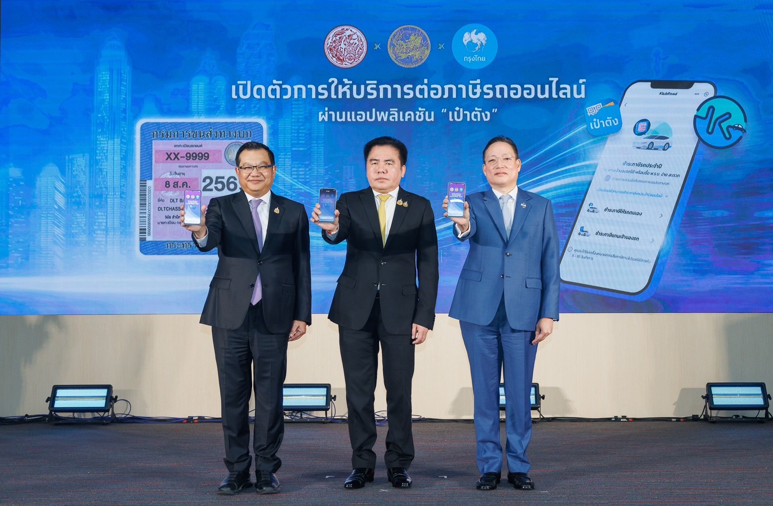 ในวันนี้จึงเป็นอีกหนึ่งก้าวสำคัญที่ทั้งสองหน่วยงานได้ร่วมมือกันต่อยอดพัฒนาการให้บริการชำระภาษีรถประจำปีผ่านแอปพลิเคชัน “เป๋าตัง” ได้สำเร็จ โดยจากที่แอปฯเป๋าตังในปัจจุบันมีจำนวนผู้ใช้งานมากกว่า 40 ล้านราย ทำให้เชื่อได้ว่าระบบดังกล่าวจะช่วยเพิ่มจำนวนรายได้จากการจัดเก็บภาษีรถประจำปีได้อย่างมีนัยสำคัญ เพราะเป็นการอำนวยความสะดวกแก่ประชาชนที่ต้องการชำระภาษีรถ ให้สามารถทำธุรกรรมทุกขั้นตอนได้ผ่านแอปฯเป๋าตัง ตั้งแต่การยื่นชำระภาษี ชำระเงิน และรอรับเครื่องหมายการเสียภาษีที่บ้านผ่านช่องทางไปรษณีย์ไทย ซึ่งระหว่างที่รอรับการจัดส่งเครื่องหมายฯ ยังสามารถแสดงเครื่องหมายการเสียภาษีผ่านแอปฯเป๋าตังได้ภายในระยะเวลา 15 วันอีกด้วย ยิ่งไปกว่านั้นกรมการขนส่งทางบกและธนาคารกรุงไทย ได้ร่วมกันต่อยอดไปอีกขั้นโดยการพัฒนาระบบการให้บริการต่ออายุใบอนุญาตขับรถผ่านแอปฯเป๋าตัง ซึ่งระบบดังกล่าวสามารถเปิดให้ประชาชนใช้งานได้ภายในปี 2569 นอกจากนี้กรมการขนส่งทางบกได้ดำเนินการวางระบบสำหรับการนำเทคโนโลยีมาใช้ในการจดทะเบียนรถ (e-Service) โดยเป็นการยื่นเอกสารขอจดทะเบียนรถผ่านระบบอิเล็กทรอนิกส์เพื่อลดระยะเวลาการจดทะเบียน ส่งผลให้ประชาชนได้รับความสะดวก รวดเร็ว และช่วยลดการใช้ป้ายแดงระหว่างรอการจดทะเบียนรถ โดยในปี 2569 จะนำร่องใช้กับการจดทะเบียนรถสำหรับรถยนต์นั่งส่วนบุคคลไม่เกิน 7 คน (รย.1) และรถจักรยานยนต์ (รย.12) ก่อนขยายไปยังรถประเภทอื่นๆต่อไป