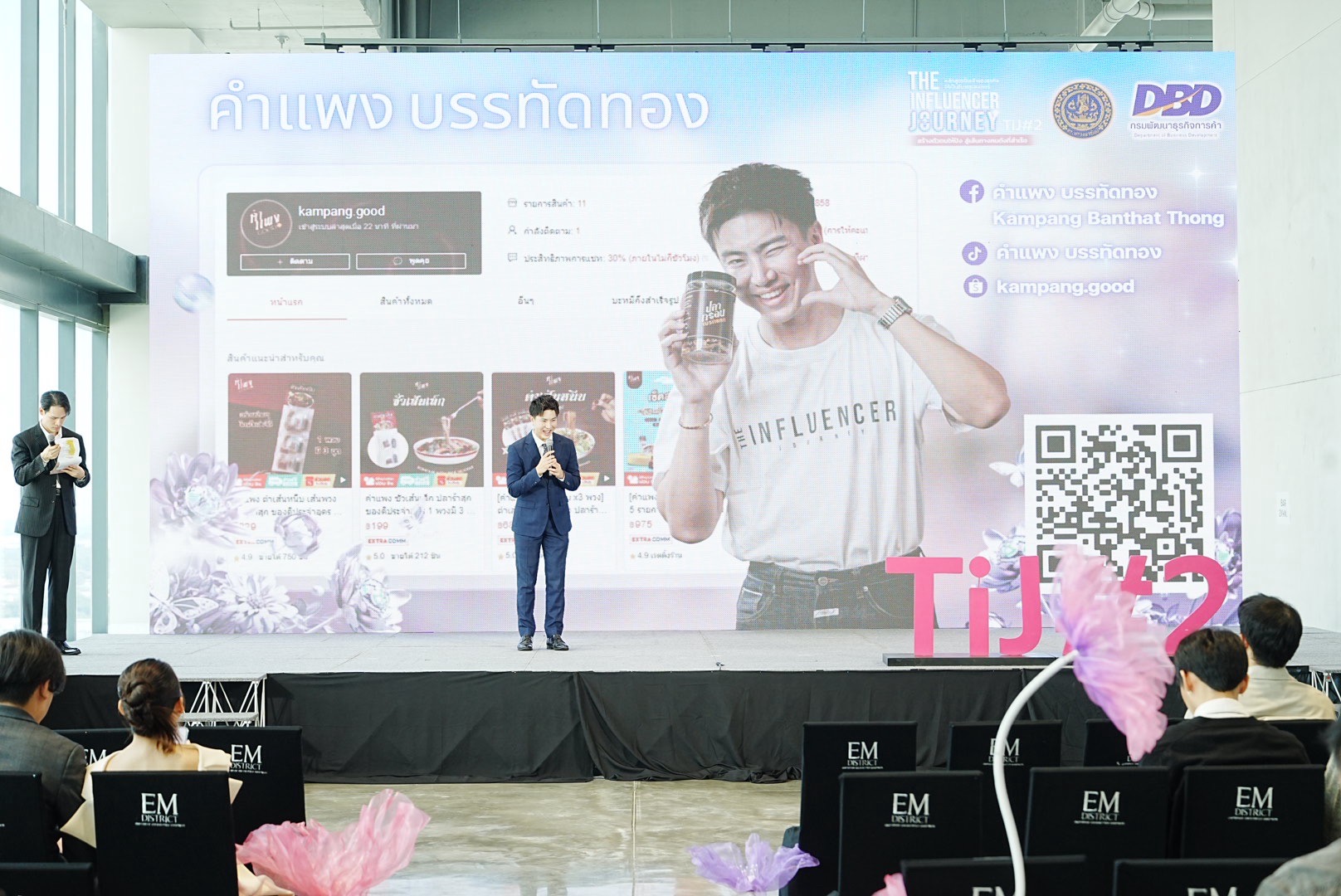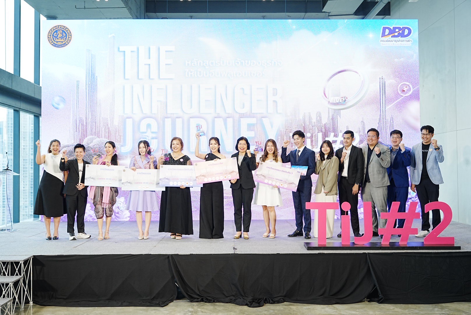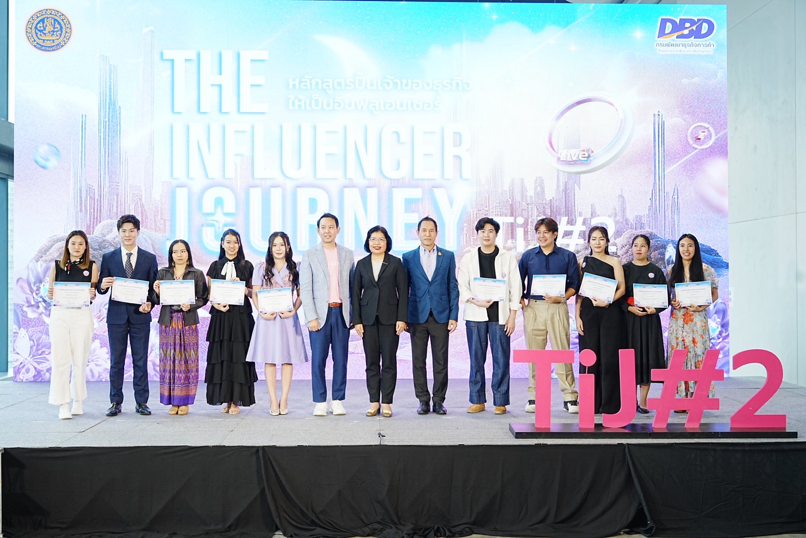 กรมพัฒนาธุรกิจการค้า มอบรางวัล DBD Influencer Award และ Privilege Card จำนวน 5 รางวัล พร้อมรางวัลพิเศษจากแพลตฟอร์มพันธมิตรชั้นนำ รวมมูลค่ากว่า 6 ล้านบาท แก่ผู้ประกอบการออนไลน์รุ่นใหม่ไฟแรงในกิจกรรมปั้นเจ้าของธุรกิจให้เป็นอินฟลูเอนเซอร์รุ่นที่ 2 (: TiJ#2) ให้พร้อมก้าวสู่การเป็น CEO Influencer รุ่นใหม่ของไทย ที่ใช้พลังของ “ตัวตน” และ “กลยุทธ์ดิจิทัล” สร้างผลลัพธ์ทางธุรกิจได้จริง! ผ่าน “มหกรรม Live Marathon” 60 วัน ที่สร้างยอดขายเฉียด 500 ล้านบาท