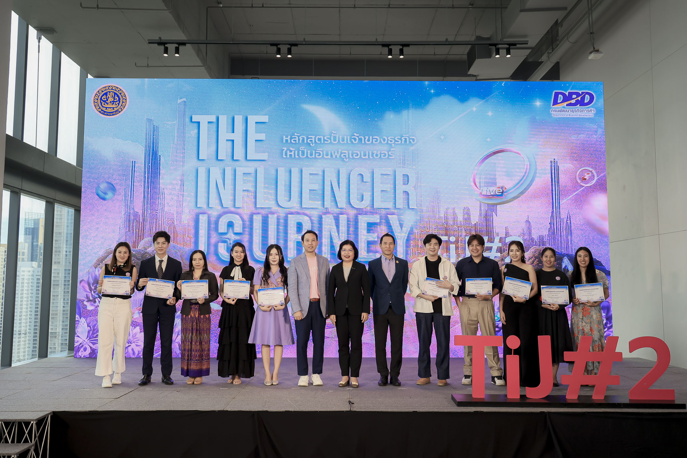 กรมพัฒนาธุรกิจการค้า มอบรางวัล DBD Influencer Award และ Privilege Card จำนวน 5 รางวัล พร้อมรางวัลพิเศษจากแพลตฟอร์มพันธมิตรชั้นนำ รวมมูลค่ากว่า 6 ล้านบาท แก่ผู้ประกอบการออนไลน์รุ่นใหม่ไฟแรงในกิจกรรมปั้นเจ้าของธุรกิจให้เป็นอินฟลูเอนเซอร์รุ่นที่ 2 (: TiJ#2) ให้พร้อมก้าวสู่การเป็น CEO Influencer รุ่นใหม่ของไทย ที่ใช้พลังของ “ตัวตน” และ “กลยุทธ์ดิจิทัล” สร้างผลลัพธ์ทางธุรกิจได้จริง! ผ่าน “มหกรรม Live Marathon” 60 วัน ที่สร้างยอดขายเฉียด 500 ล้านบาท