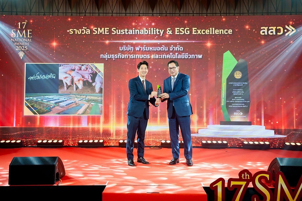 “ฟาร์มหมอต้น” ผู้ประกอบการฟาร์มเลี้ยงสุกร ในพื้นที่จังหวัดฉะเชิงเทราและปราจีนบุรี ที่วันนี้ดำเนินงานมาแล้ว 11 ปี และสามารถพาธุรกิจขึ้นแท่นผู้ประกอบการยอดเยี่ยมระดับชาติ คว้า 3 รางวัล ได้แก่ รางวัลรองชนะเลิศอันดับ 1 SME National Awards 2025 และอีก 2 รางวัลพิเศษ คือ รางวัล SME แห่งชาติยอดเยี่ยม และรางวัล SME Sustainability & ESG Excellence ภายใต้โครงการ MSME National Awards 2025 ของสำนักงานส่งเสริมวิสาหกิจขนาดกลางและขนาดย่อม (สสว.) และ มหาวิทยาลัยธรรมศาสตร์ ซึ่งปีนี้ จัดขึ้นเป็นครั้งที่ 17