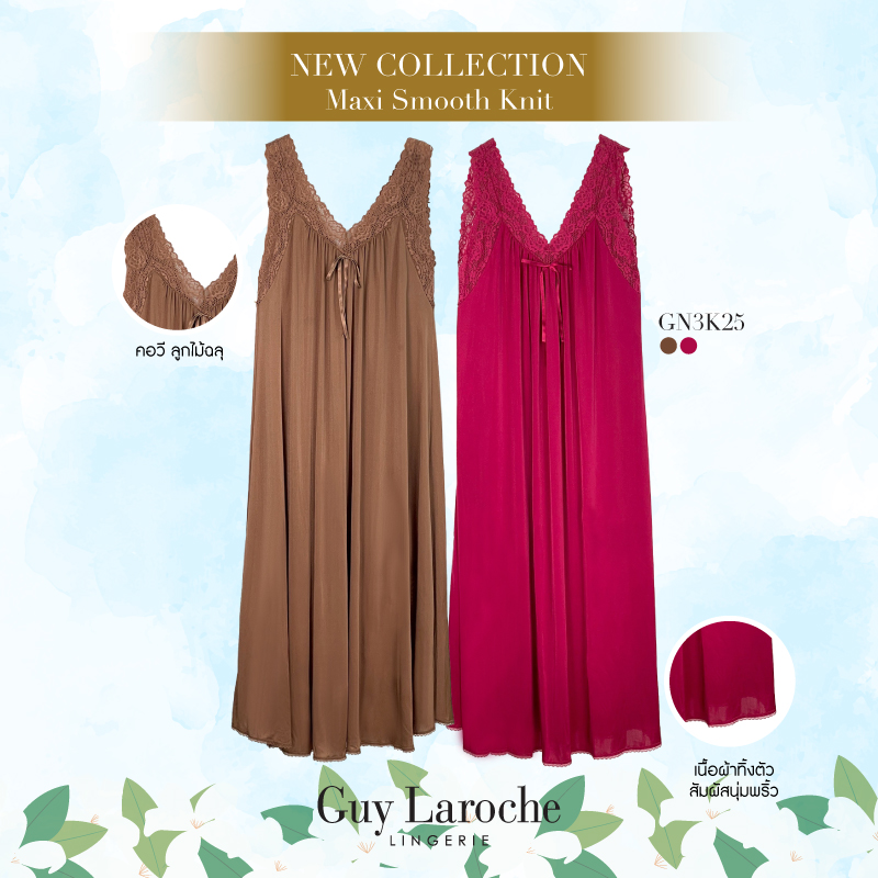 Guy Laroche Lingerie (กีลาโรช ลองเจอเรย์) แบรนด์ชุดนอนจากประเทศฝรั่งเศส ในเครือโอซีซี กรุ๊ป ชวนสาวๆบอกรักคุณแม่ด้วยชุดนอนที่ใส่สบายที่สุด Maxi Smooth Knit (แมกซี่ สมูทนิต) ผ้าสมูทนิต ลิขสิทธิ์เฉพาะกีลาโรช ฝรั่งเศส ให้สัมผัสนุ่มลื่น เย็นสบายผิว เนื้อผ้ามีความเงางาม ทิ้งตัวสวย ไม่ระคายเคืองผิว ช่วยให้คุณได้หลับสบายในทุกค่ำคืน กับดีไซน์คอวีประดับลูกไม้ละเอียดอ่อนเพิ่มความหรูหรา จำหน่ายในราคา 3,990 บาท