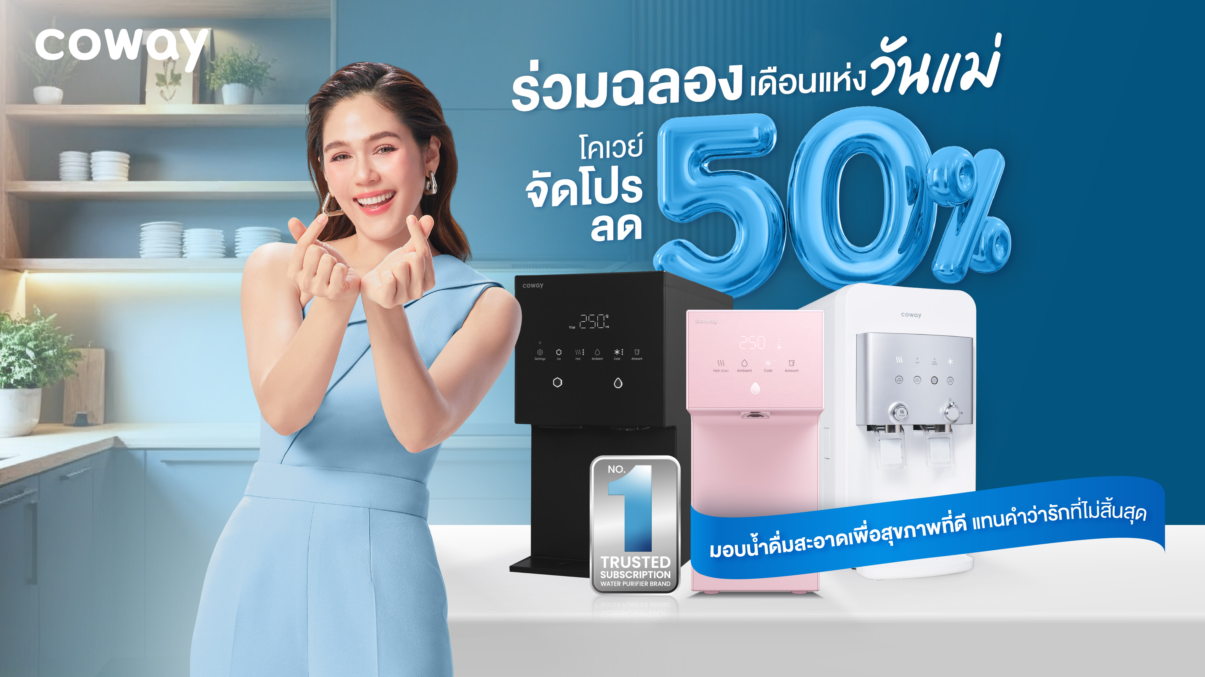 เนื่องในวันแม่แห่งชาติ 12 สิงหาคมนี้ โคเวย์ (COWAY) แบรนด์เครื่องกรองน้ำและเครื่องฟอกอากาศอันดับ 1 จากประเทศเกาหลีใต้ จัดโปรโมชันวันแม่ตั้งแต่วันนี้ถึงสิ้นเดือนสิงหาคม ให้คุณบอกรักแม่ด้วยสุขภาพที่ดี มอบส่วนลดค่าบริการเครื่องกรองน้ำดื่มระบบ Subscription สูงสุดถึง 50% นาน 7 เดือนสำหรับลูกค้าใหม่ พร้อมบริการหลังการขายระดับพรีเมียม ที่จะคอยดูแลคุณและครอบครัวอย่างต่อเนื่องตลอดอายุการใช้งาน