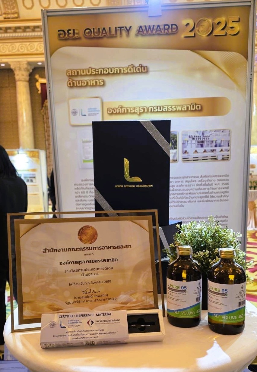 เมื่อวันที่ 6 สิงหาคม 2568 องค์การสุรา กรมสรรพสามิต หน่วยงานรัฐวิสาหกิจผู้ผลิตแอลกอฮอล์สำหรับใช้ในอุตสาหกรรมอาหารและยา ได้รับการคัดเลือกจากสำนักงานคณะกรรมการอาหารและยา (อย.) เข้ารับรางวัล “อย. ควอลิตี้ อวอร์ด ประจำปี 2568” ประเภท “สถานประกอบการดีเด่นด้านอาหาร” ณ ห้องรอยัล จูบิลี่ บอลรูม อิมแพ็ค เมืองทองธานี โดยได้รับเกียรติจาก นายสมศักดิ์ เทพสุทิน รัฐมนตรีว่าการกระทรวงสาธารณสุข เป็นประธานมอบรางวัล โดยมีนายสุริยา วงทะนี รักษาการในตำแหน่งผู้อำนวยการองค์การสุรา เป็นผู้รับมอบรางวัล นับเป็นการตอกย้ำความสำเร็จขององค์การสุรา กรมสรรพสามิต ในฐานะหน่วยงานรัฐวิสาหกิจที่ดำเนินธุรกิจด้านการผลิตแอลกอฮอล์ เพื่อตอบสนองความต้องการด้านการแพทย์ เภสัชกรรม วิทยาศาสตร์ และภาคอุตสาหกรรมการผลิตของประเทศ
