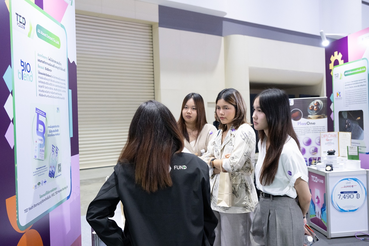 ต่อด้วยกิจกรรมจากบริเวณ Zone C: Innovator Playground ผู้ประกอบการและผู้สนใจธุรกิจนวัตกรรมจะได้พบกับบูธ TED Fund ซึ่งพร้อมให้คำปรึกษาด้านทุนธุรกิจ อัปเดตเทรนด์นวัตกรรม ค้นหาแรงบันดาลใจใหม่ และต่อยอดไอเดียสู่การเป็นธุรกิจจริง โดยปีนี้ TED Fund นำเสนอผลงานเด่นจากผู้ประกอบการที่ได้รับทุนสนับสนุนและประสบความสำเร็จทางธุรกิจ ภายใต้แนวคิด “เสริมแกร่ง สานฝัน ปั้นธุรกิจ” สะท้อนพันธกิจในการสร้างโอกาสให้กับนักศึกษาและผู้ประกอบการรุ่นใหม่ ผ่านการสนับสนุนเงินทุน องค์ความรู้ด้านเทคโนโลยีและนวัตกรรม ตลอดจนการเชื่อมโยงเครือข่ายพันธมิตร เพื่อผลักดันสตาร์ทอัพไทยให้เติบโตอย่างแข็งแกร่งพร้อมแข่งขันทั้งในประเทศและระดับนานาชาติอย่างยั่งยืน