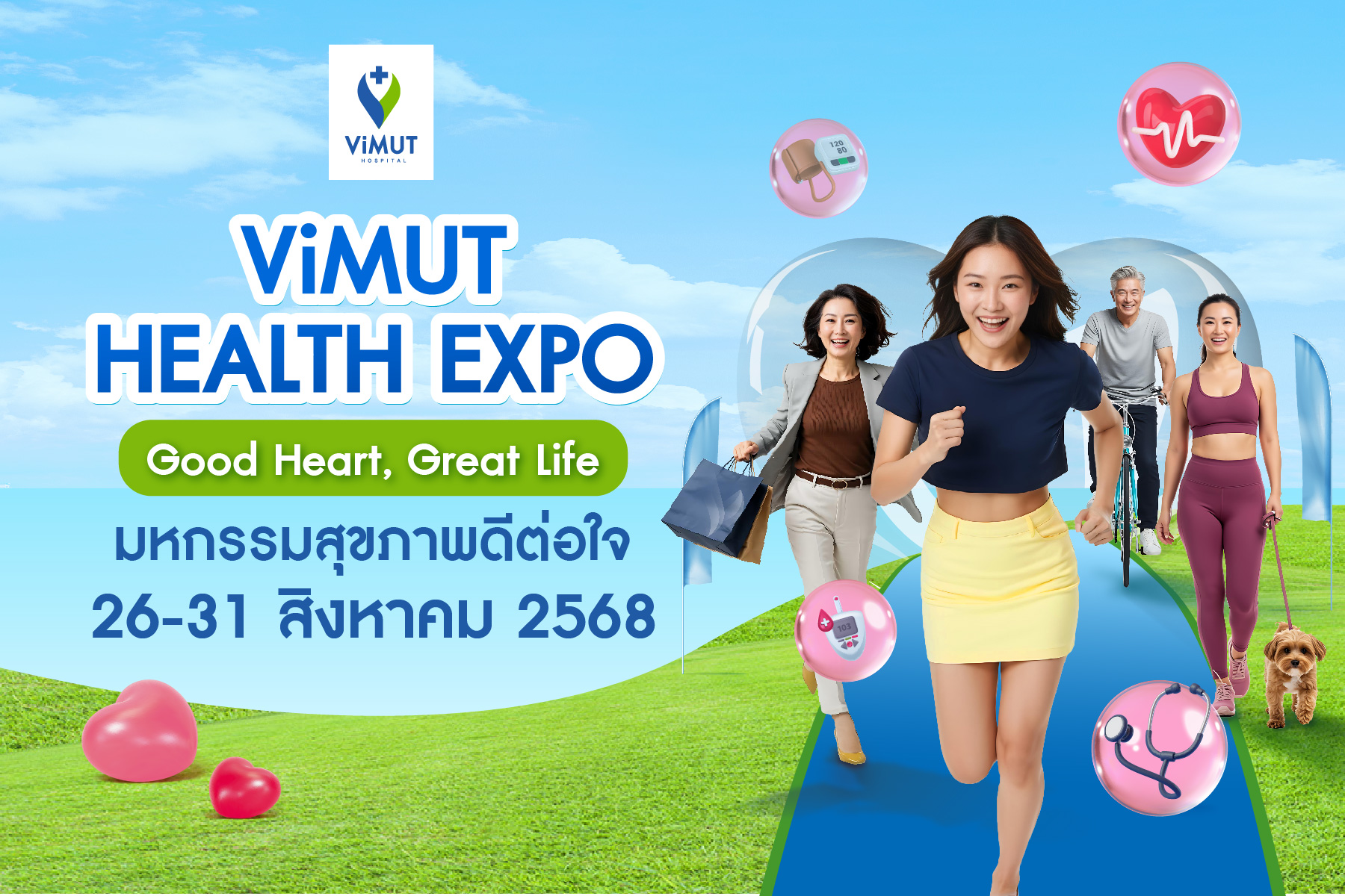 โรงพยาบาลวิมุต พหลโยธิน โรงพยาบาลเอกชนชั้นนำใจกลางกรุงเทพฯ เดินหน้าสร้างสังคมสุขภาพดีอย่างต่อเนื่อง เชิญชวนประชาชนร่วมงาน ViMUT Health Expo – Good Health, Good Life มหกรรมสุขภาพดีต่อใจสุดยิ่งใหญ่แห่งปี ระหว่างวันที่ 26–31 สิงหาคม 2568 เวลา 09.30–16.30 น. ณ ลานกิจกรรม ชั้น 1 โรงพยาบาลวิมุต พหลโยธิน โดยงานนี้มีเป้าหมายเพื่อส่งเสริมให้ประชาชนทุกวัยหันมาตระหนักถึงความสำคัญของการดูแลสุขภาพเชิงป้องกัน พร้อมเปิดโอกาสให้เข้าถึงบริการสุขภาพมาตรฐานโรงพยาบาลชั้นนำในราคาสุดคุ้ม ทั้งแพ็กเกจตรวจสุขภาพและกิจกรรมสุขภาพแบบครบครันที่คัดสรรมาเพื่อทุกช่วงวัยโดยเฉพาะ