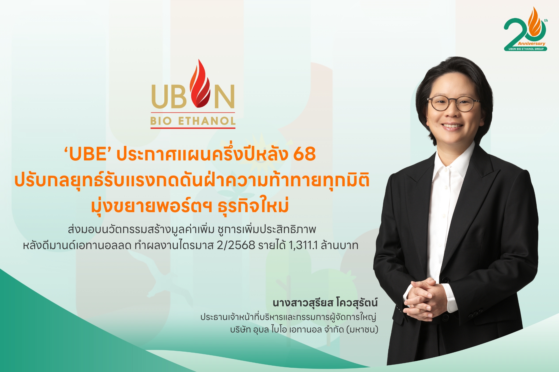 นางสาวสุรียส โควสุรัตน์ ประธานเจ้าหน้าที่บริหาร และกรรมการผู้จัดการใหญ่ บริษัท อุบล ไบโอ เอทานอล จำกัด (มหาชน) (บริษัทฯ) หรือ UBE ผู้ผลิตและจำหน่ายผลิตภัณฑ์แปรรูปจากมันสำปะหลังรายใหญ่ของประเทศไทย เปิดเผยว่า ในช่วงครึ่งปีหลัง 2568 บริษัทฯ ปรับทิศทางการดำเนินธุรกิจเพื่อรับแรงกดดันจากความท้าทายจากปัจจัยภายในและต่างประเทศ ไม่ว่าจะเป็นภาวะเศรษฐกิจที่ชะลอตัว การท่องเที่ยวที่มีแนวโน้มชะลอลง พฤติกรรมผู้บริโภคที่ระมัดระวังการใช้จ่ายมากขึ้น ส่งผลให้การใช้น้ำมันรวมถึงเอทานอลมีแนวโน้มทรงตัว ขณะที่ราคาเอทานอลปรับตัวลดลง ส่งผลต่อความสามารถในการด้านแข่งขันทางด้านราคา จากความไม่สมดุลระหว่างอุปสงค์และอุปทานในตลาดเอทานอล รวมถึงความผันผวนของวัตถุดิบมันสำปะหลังจากสถานการณ์ภูมิรัฐศาสตร์ และสภาพภูมิอากาศที่แปรปรวน ซึ่งส่งผล กระทบต่อต้นทุนการผลิต ประกอบกับนโยบายอัตราภาษีนำเข้าของอเมริกา ทิศทางค่าเงินบาทที่แข็งค่า